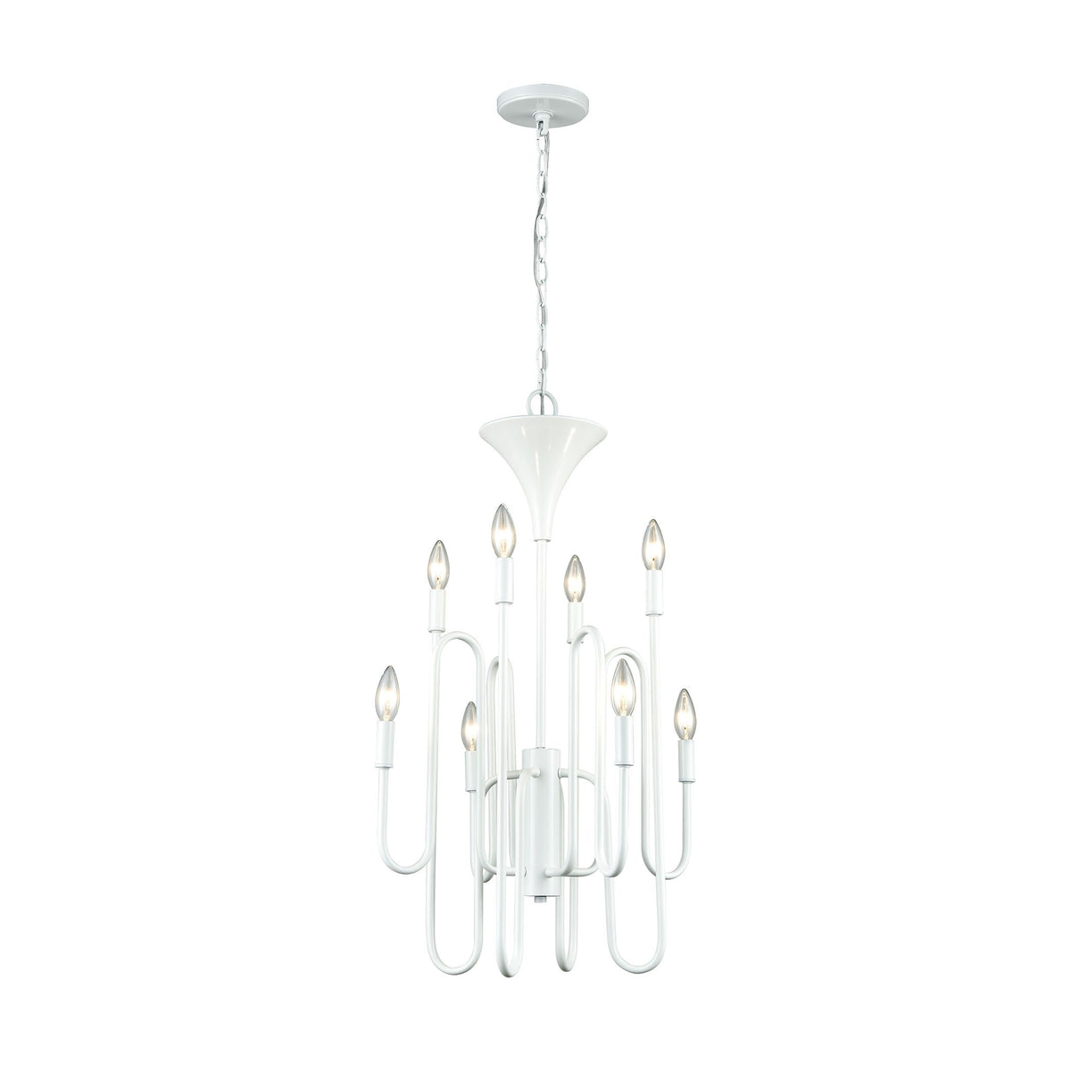 Elk Home Matte White 8-Light Chandelier, 19" W X 33" H, Elegant Ceiling Light For Home Decor