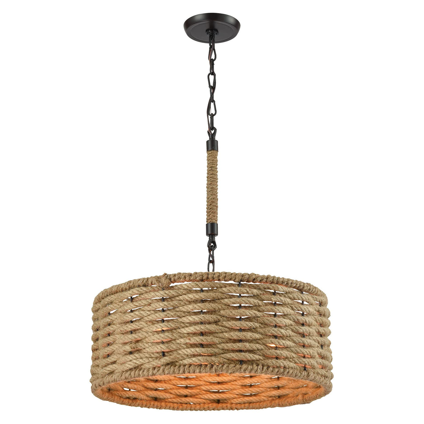 Elk Home Weaverton 3-Light Chandelier, Oil Rubbed Bronze, Natural Rope Shade, 19"W X 19"D