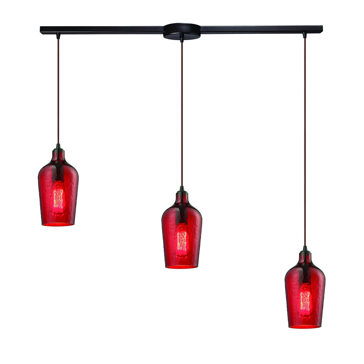 Elk Lighting Hammered Red Glass 3-Light Chandelier, Bronze Finish, Stylish Home Lighting