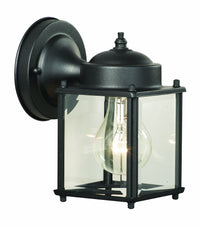 Illuminate your outdoor spaces with the Essentials 1-Light Outdoor Wall Lantern in Black, a perfect blend of style, functionality, and security. This elegant fixture is designed to enhance your home's exterior while providing essential lighting for safety and ambiance.
