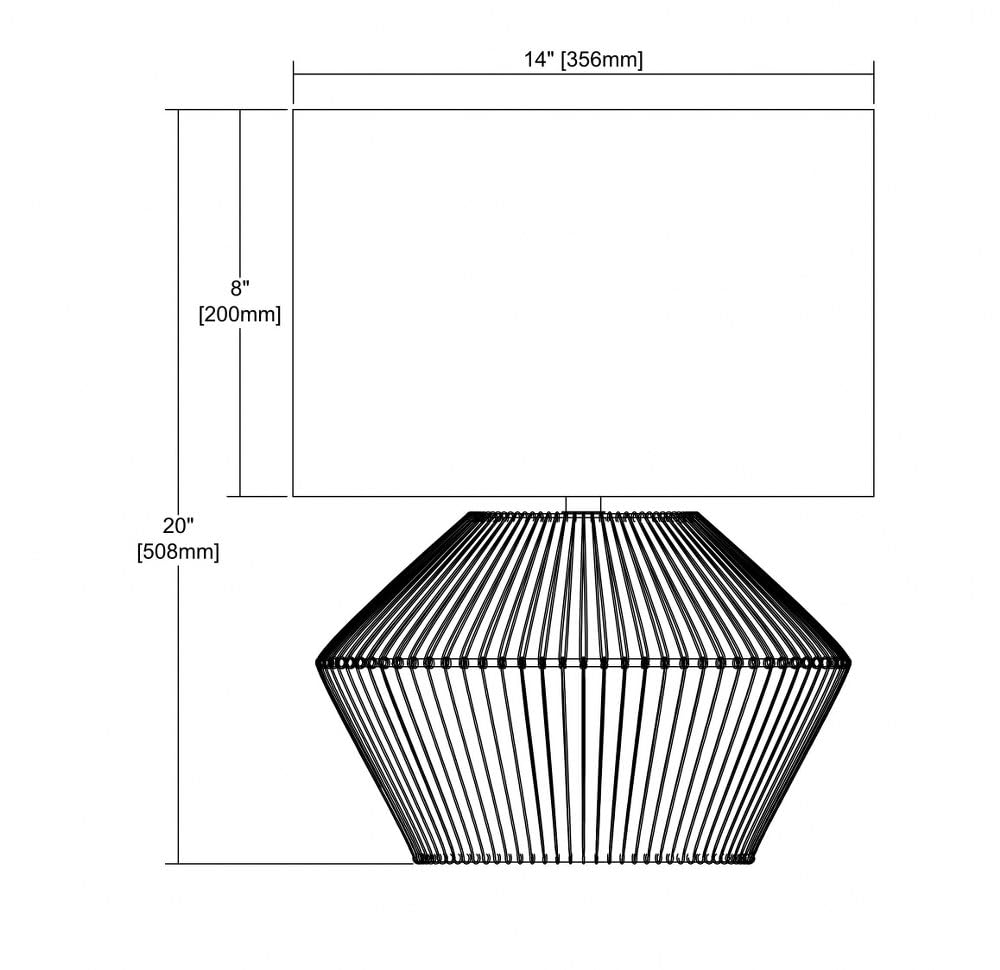 Q: What are the dimensions of the Vavda Table Lamp?A: The overall dimensions of the lamp are 14 inches in width, 14 inches in depth, and 20 inches in height, with the shade measuring 14 inches in width, 14 inches in depth, and 8 inches in height.