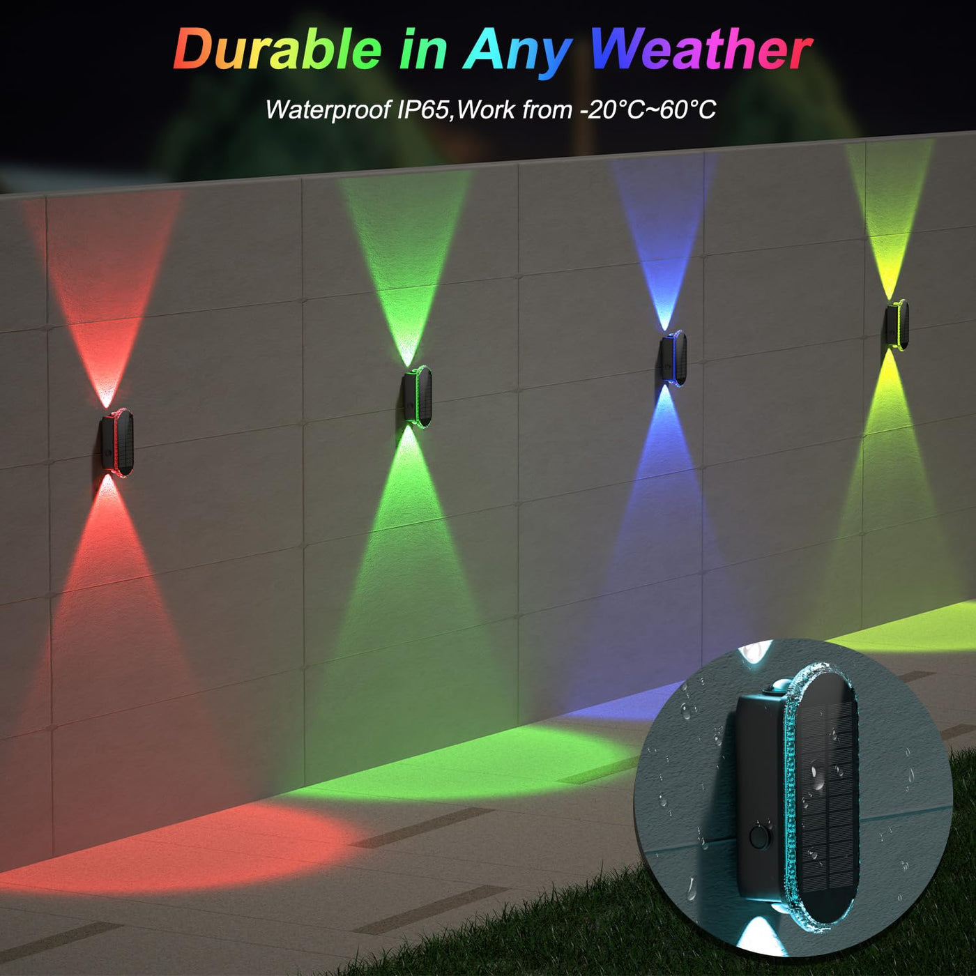 Ellasay Outdoor Rgb Solar Fence Lights Up And Down 4 Pack