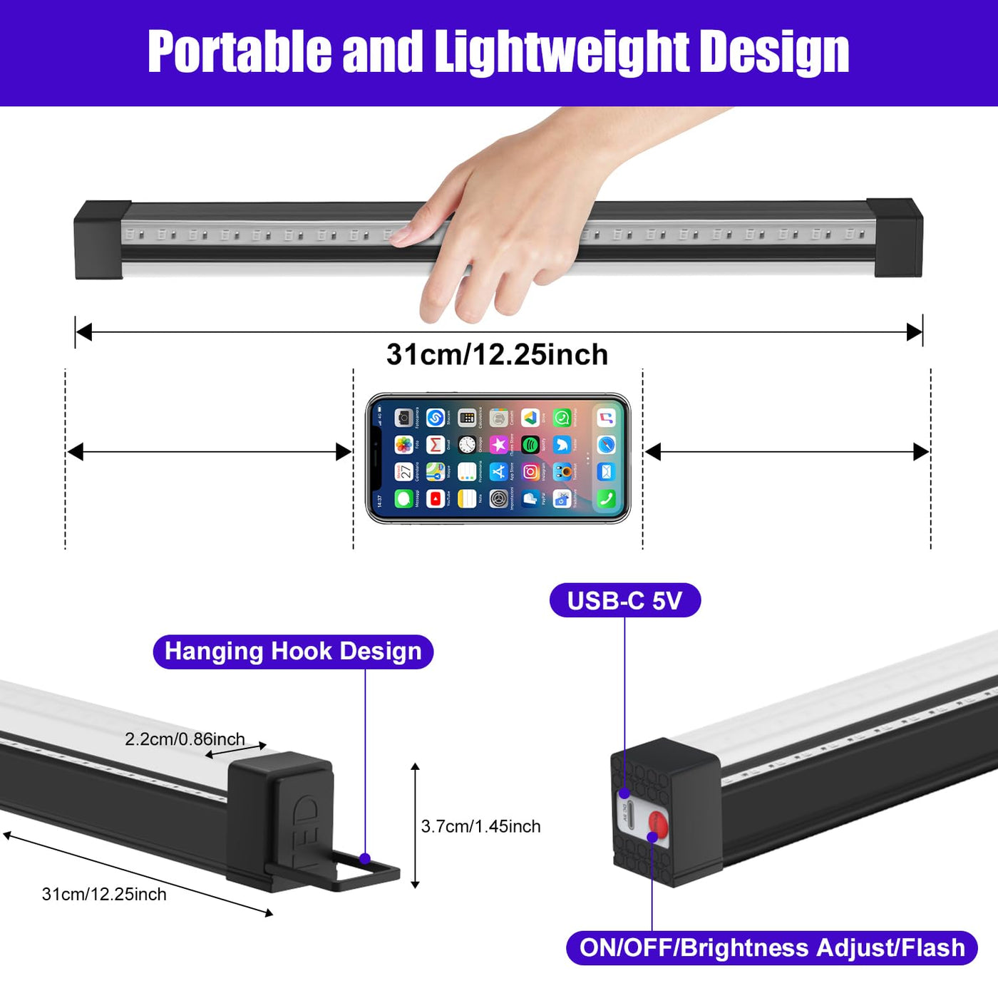Q: How do I install the black light bar?A: The Elwoks Black Light Bar offers flexible installation options, including hooks for hanging, magnetic mounting, wall installations, and under-counter clips, making it easy to set up in various locations.
