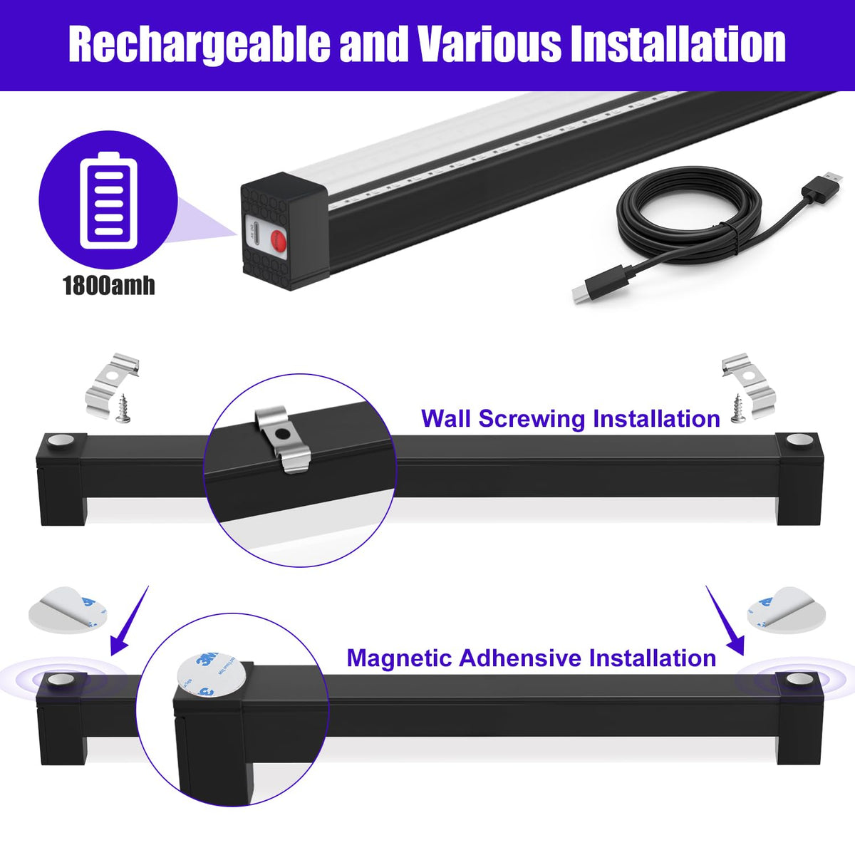 Elwoks Rechargeable Black Light Bar 10W Lft, Battery Powered Led Blacklight For Body Paint Glow Party Uv Strip Lights For Cabinet And Display Magnetic 4 Pack