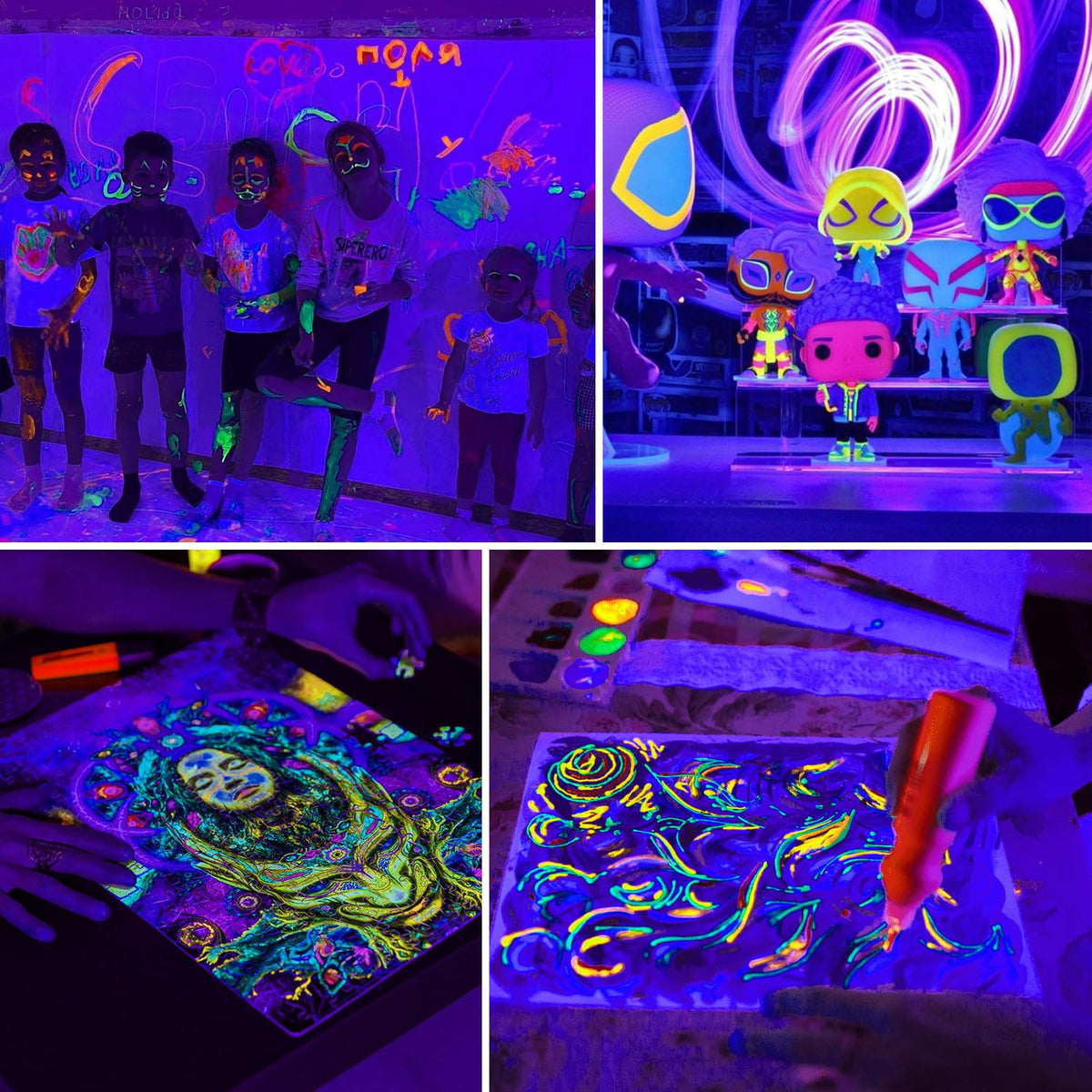 Q: What is the runtime of the Elwoks Rechargeable Black Light Bar?A: The Elwoks Rechargeable Black Light Bar is designed for extended use, allowing for hours of operation on a full charge, making it ideal for outdoor fluorescent activities and events.