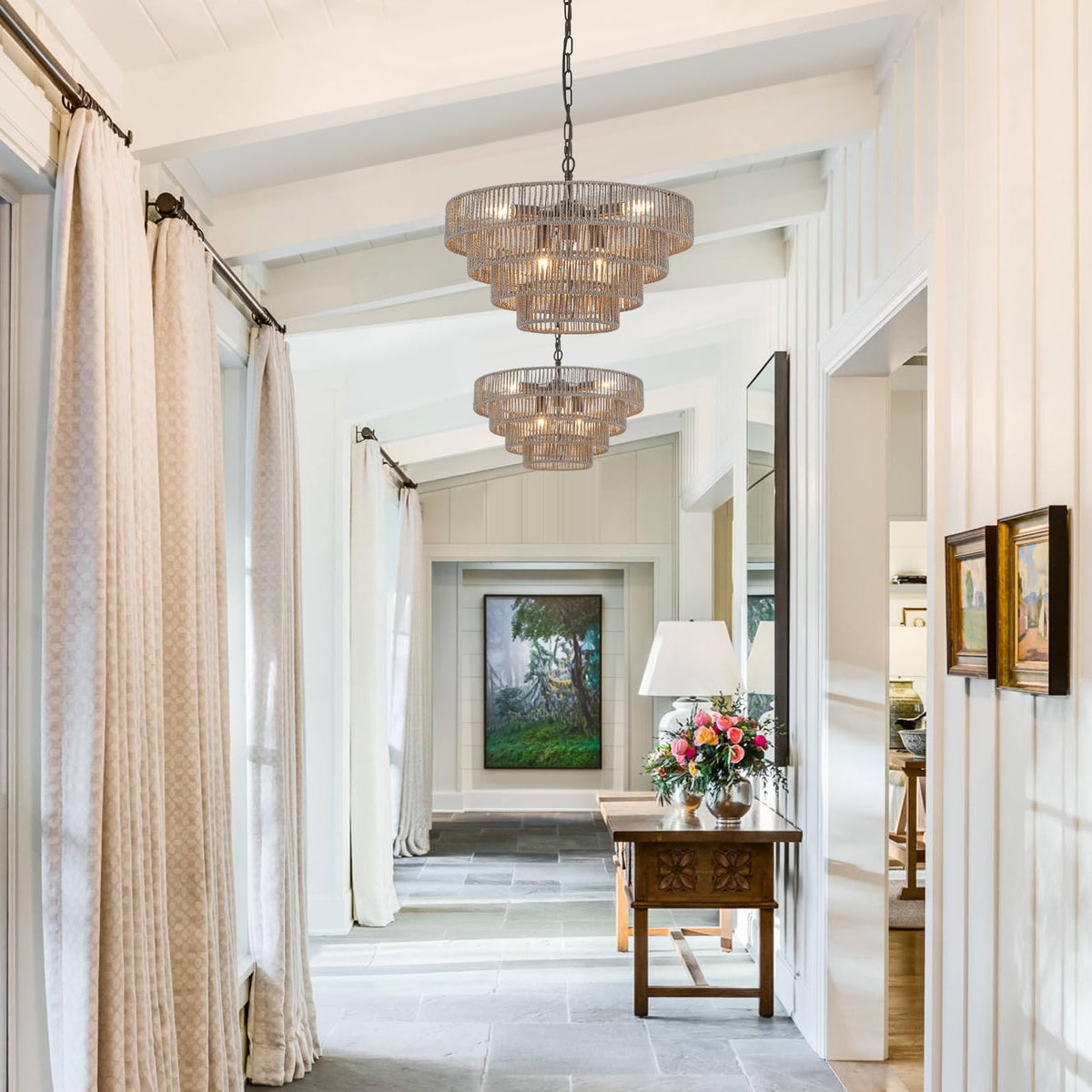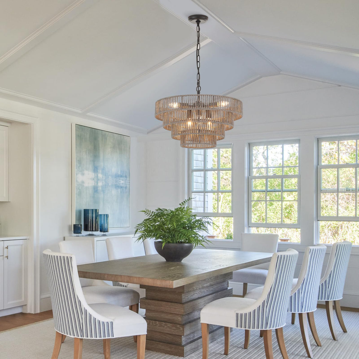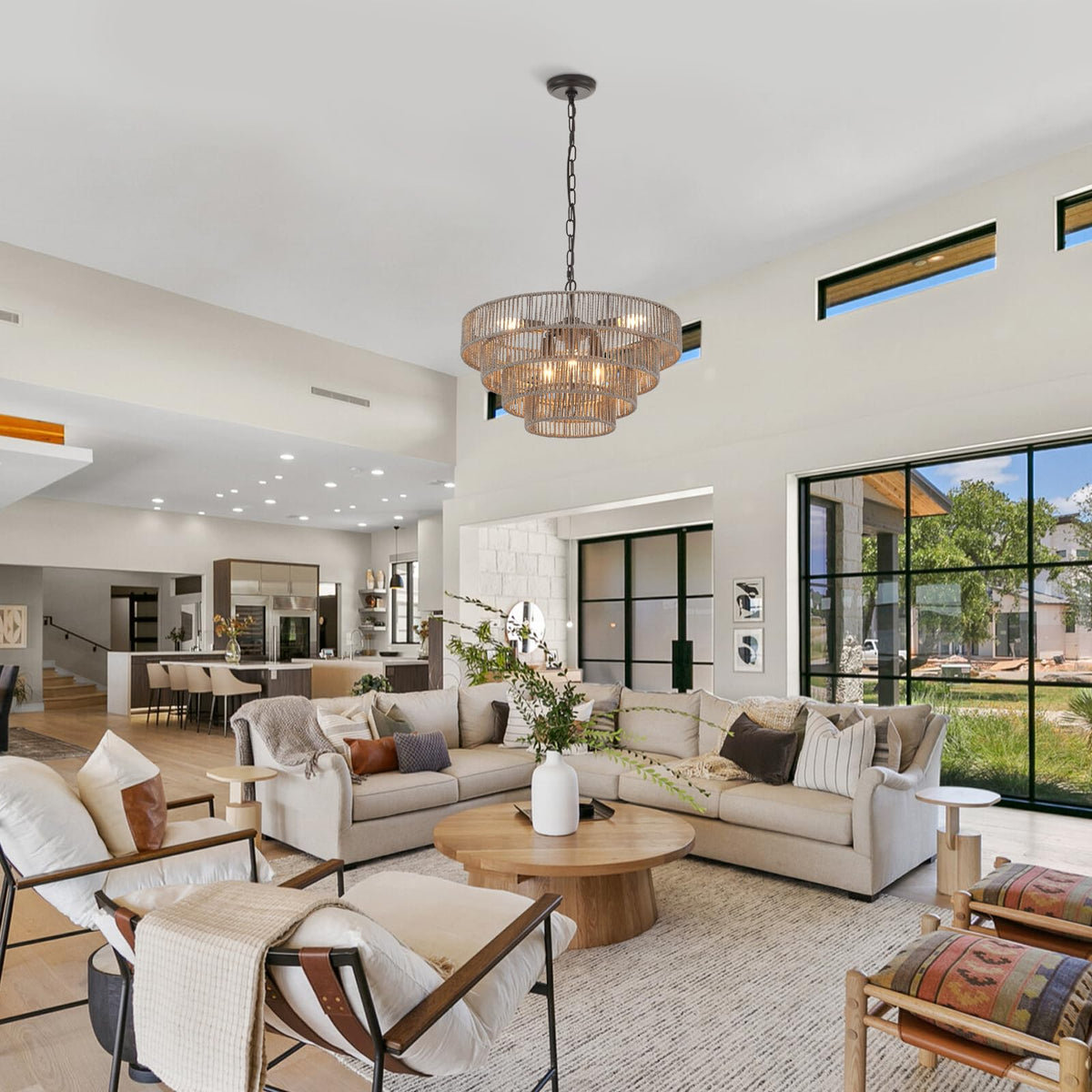 Q: Where can I install the ELYCCUPA Rattan Chandelier?A: This versatile chandelier is ideal for installation in kitchens, kitchen islands, dining rooms, living rooms, hallways, walk-in closets, and even restaurants. It is recommended for spaces ranging from 150 to 260 square feet.