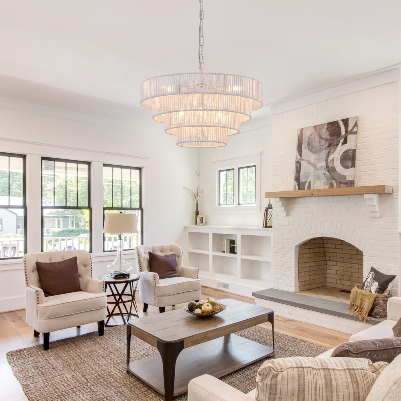 This farmhouse chandelier is made of handmade wicker woven with high-quality metal frames, which are anti-corrosion, have no rust, are anti-faded, and enhance decorativeness at the same time, thereby assuring a long lifespan.