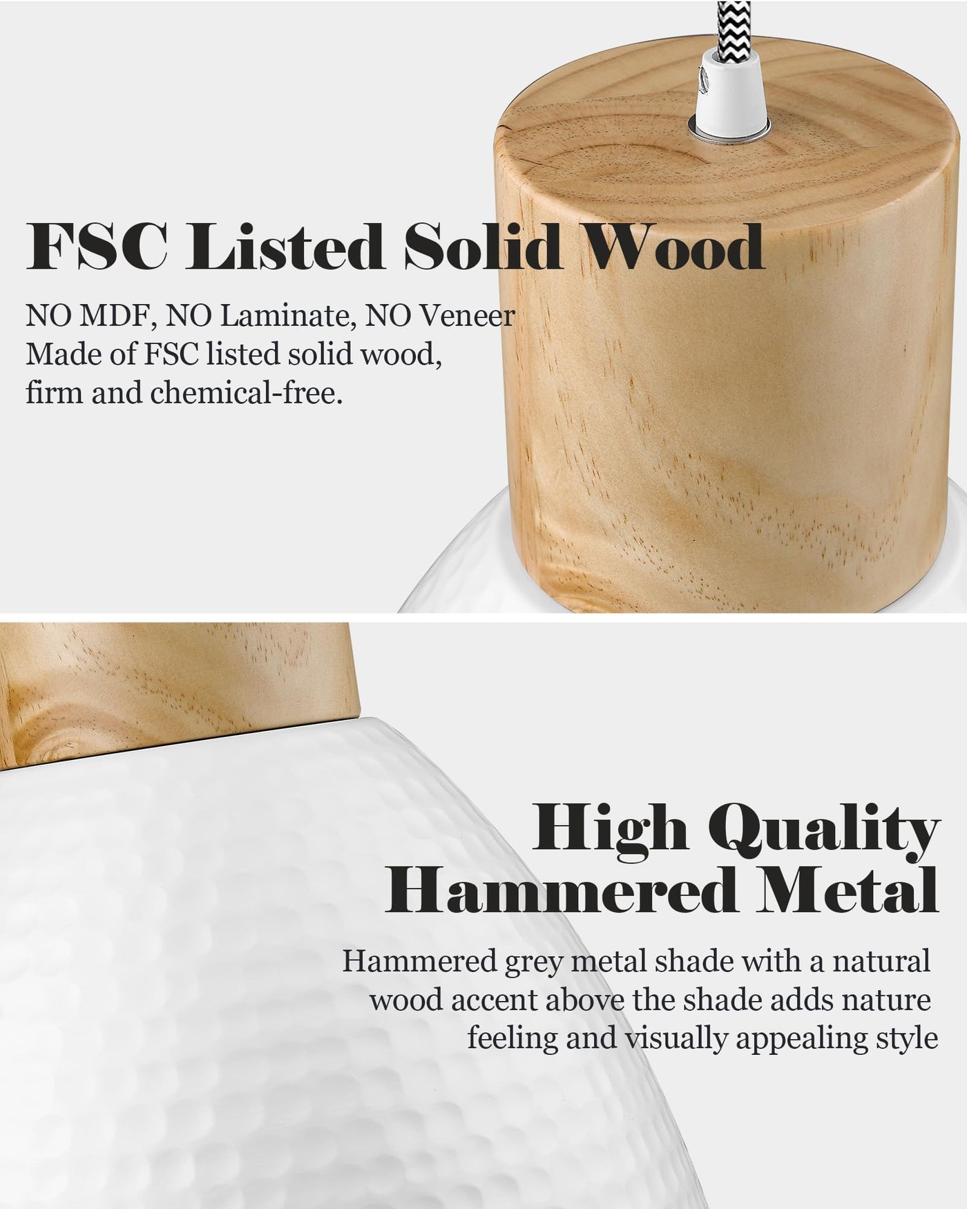 Elyona 10.2 Hammered Pendant Light Fixtures, Metal & Rubber Wood Island Hanging Lamp, Adjustable Height, Modern Pendant Light