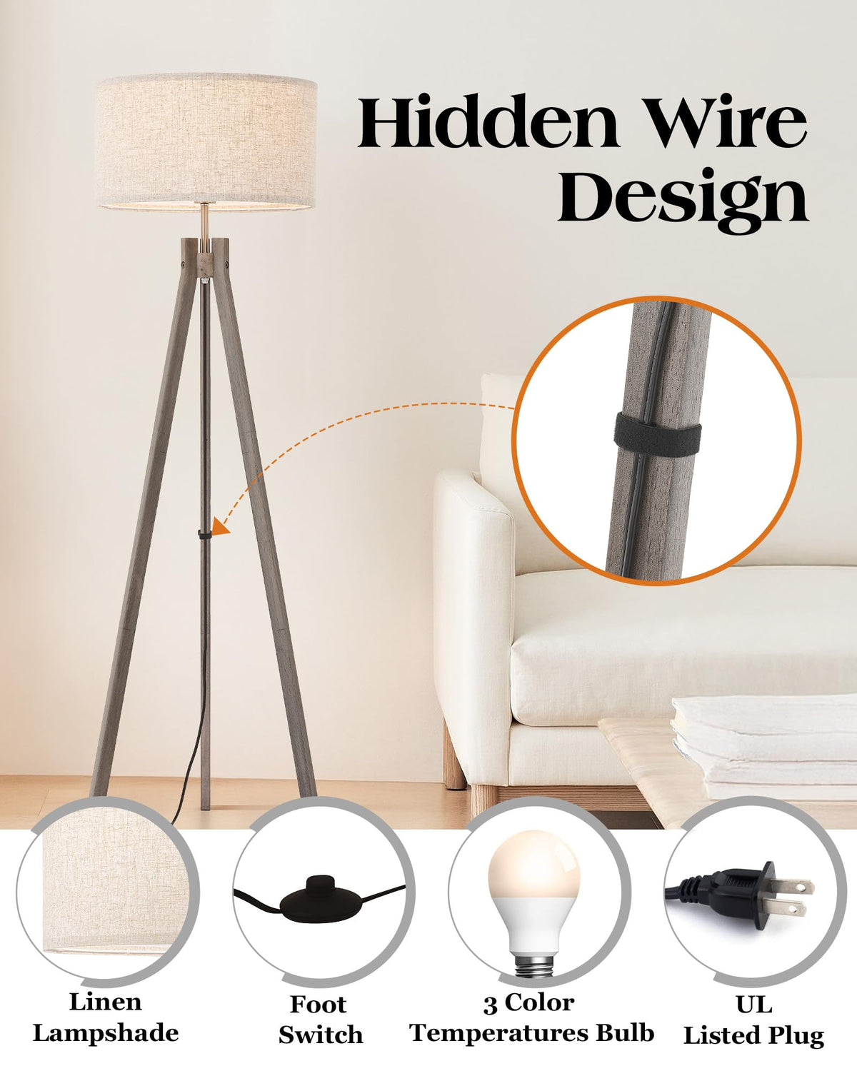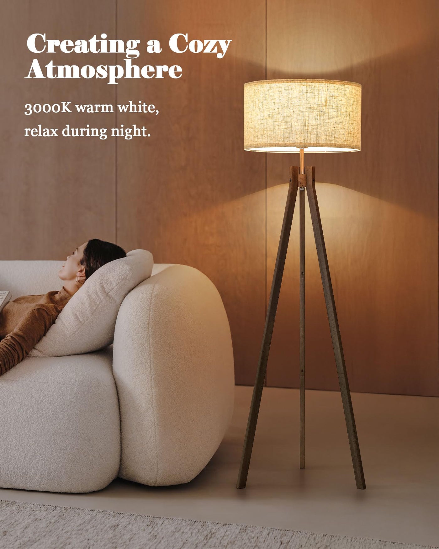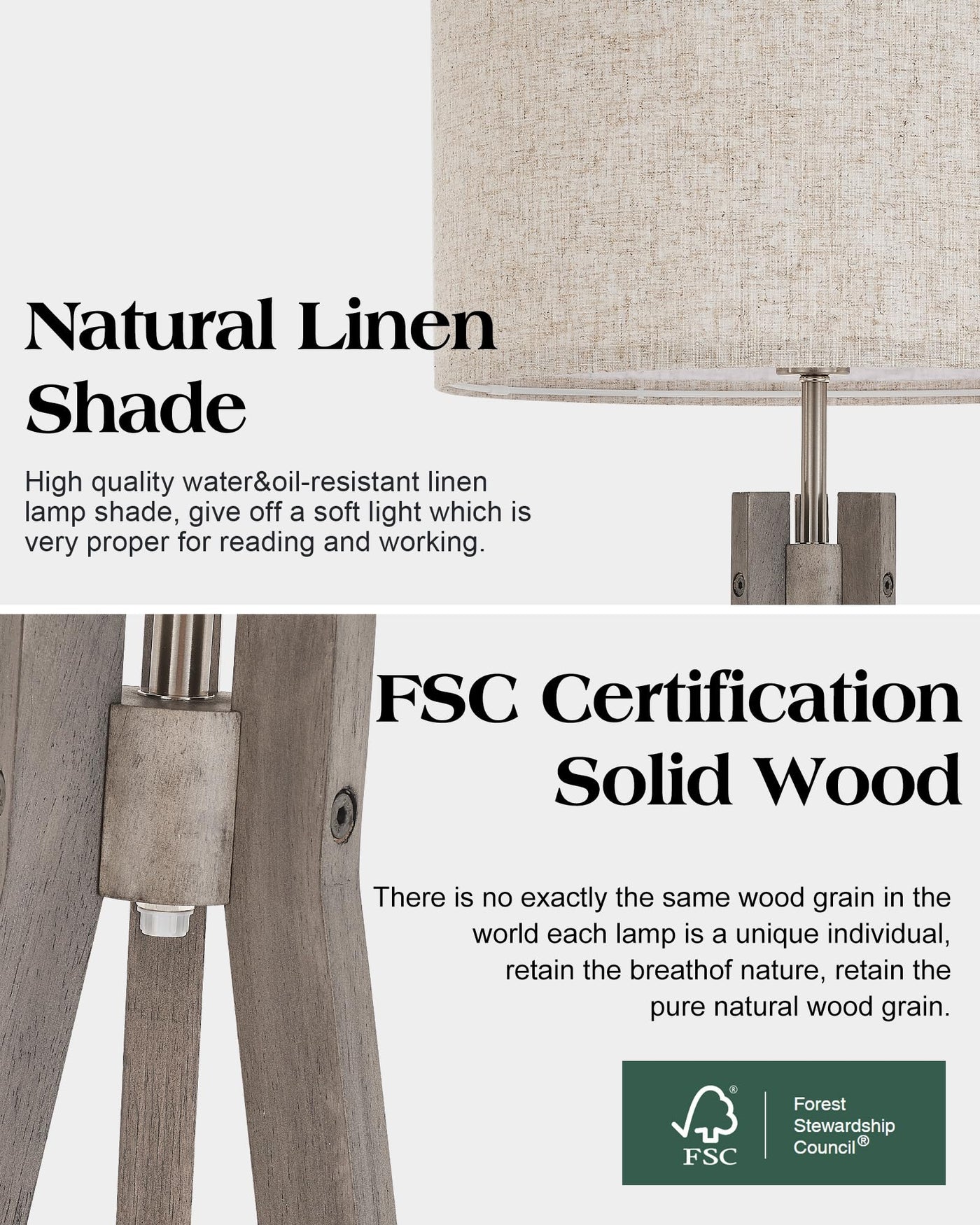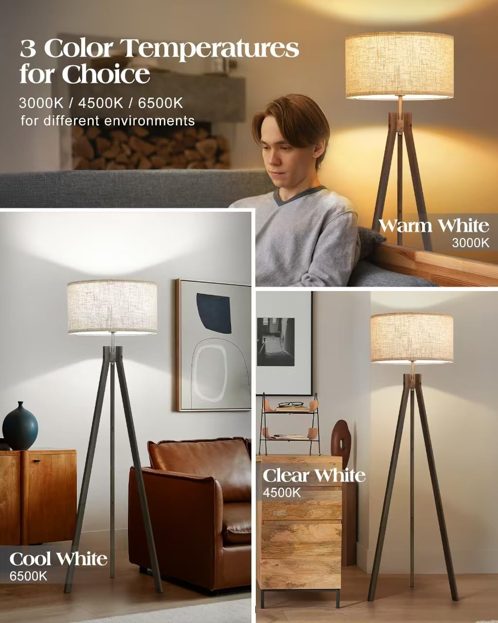? Hand Painted &Amp; Fsc Listed Solid Wood ?Compared With Other Products, Our Wooden Legs Are Thicker And More Stable. No Mdf, No Laminate, No Veneer. Elyona Use High-Quality Fsc Listed Solid Wood Boards, Waterproof And Anti-Scratch,Very Easy To Clean.Give Consumers A Better User Experience. All Our Productions Are Designed By Ourselves, We Are Direct Manufacturers Of Our Products. Each Floor Lamp Is Hand Painted By Experienced Masters In Our Factory . Each Piece Is Unique For You. ? Stylish Modern Solid Wood Tripod Floor Lamp? Elyona Standing Lamp Is Combined With Wood Side Table To Put Your Phone, Coffee Cup, Ornaments, Magazine. It Easy To Match With A Range Of Decor Styles Including Rustic, Industrial,Farmhouse,Boho,Country, Apartment Or Loft Etc. Add A Touch Of Modern Natural Feeling To Your Life.?The Foot Switch Is Convenient For Enabling You To Turn It On/Off Or Adjust The Light Color With Ease. ?Includes A 3-Color Temperatures Led Bulb (9W) Offering 3000K Warm Light, 4500K Natural Light, And 6000K White Light, Providing Suitable Lighting For Different Usage Scenarios, Such As A Night Light In The Bedroom, An Ambient Light Or A Reading Light In The Living Room.?( Please Assure The Replace Bulb Is Less Than 60 Watts)&Nbsp;?Led Energy-Saving Bulb Included?E26 3&Nbsp;3 Color Temperatures Led Bulb Included (9W). Long Lifespan 25, 000 Hours Lifetime Of The Bulb Can Save Your Money Greatly, And You Won'T Need To Replace Them Frequently. Linen Lamp Shade,&Nbsp; Provide A Gentle Ambient Brightness To Create A Comfortable Environment And Cozy For Your Eyes. Perfect For Reading, Work, Or Rest. ( Pls Assure The Replace Bulb Is Less Than 60 Watts)