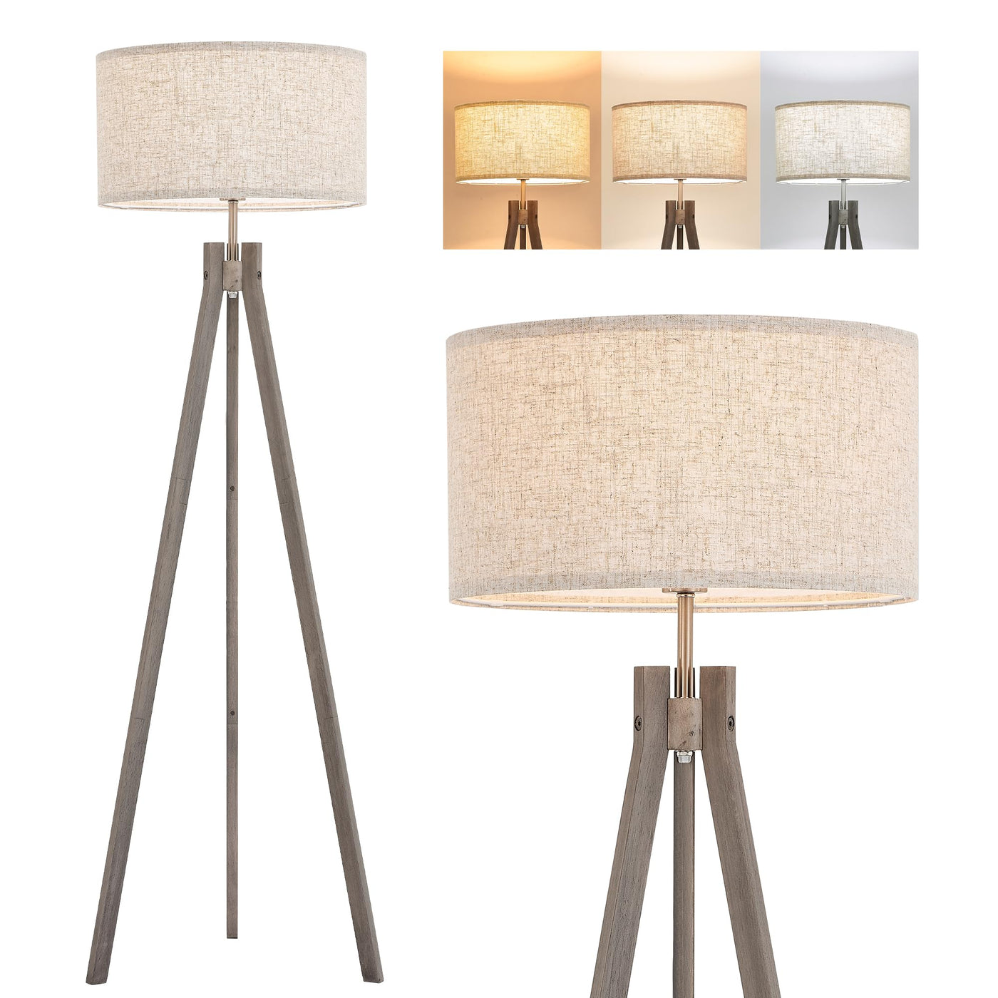 Elyona Farmhouse Wood Tripod Floor Lamp, Modern Reading Standing Lamp With 3 Color Temperatures Led Blub & Nature Linen Shade, N