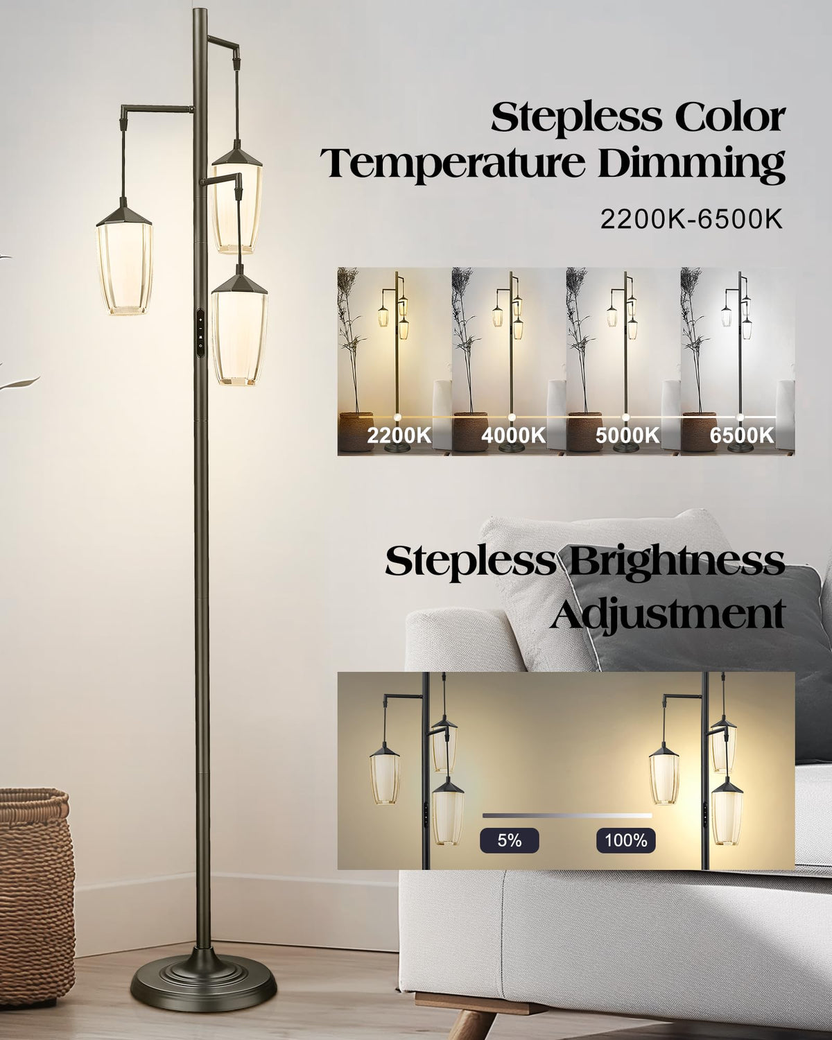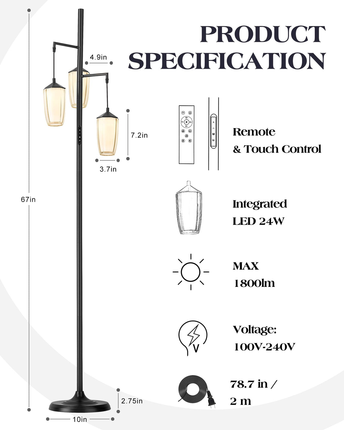 Description Elyona Led Remote Control Tree Floor Lamp Has Stepless Brightness Adjustment (From 30%-100%), And Color Temperatures (From 2200K-6500K). Offering A Broader Color Spectrum Compared To Most Temperature-Adjustable Products On The Market. 2200K Provides Extremely Warm Light During Rest, While 6500K Is Perfect For Efficient Office Work. Better Meet Your Diverse Needs In Various Scenarios, Such As Living Room, Dining Room, Bedroom, And Home Office. This Is An Intelligent Floor Lamp That Can Meet All Your Needs. Both Control Functions.The Remote Control Operates At A Maximum Distance Of 20 Meters, Featuring A Magnetic Attachment For Easy Storage On The Lamp Pole. Providing Various Scenes, Such As Reading, Working, Gaming And Night Lighting, The Memory Function Can Help You Remember The Last Setting.If The Remote Control Is Lost, You Can Also Select The Touch Switch. &Nbsp; Not Included: Bulb(S): Integrated Led Bulbs Switch Type: Remote &Amp; Touch Control Specifications Voltage: 100V-240V Base Type: E26 Base Material: Black Metal &Amp; High-Strength Acrylic Lamp Shades &Nbsp; Weight &Amp; Dimensions Overall Weight: 5.5 Lb Overall Dimensions 67'' H X 10'' W X 10'' D &Nbsp; Package Contents 1* Floor Lamp 1*User Manual &Nbsp; Warm Tips The Floor Lamp And The Bulb Are Not Waterproof