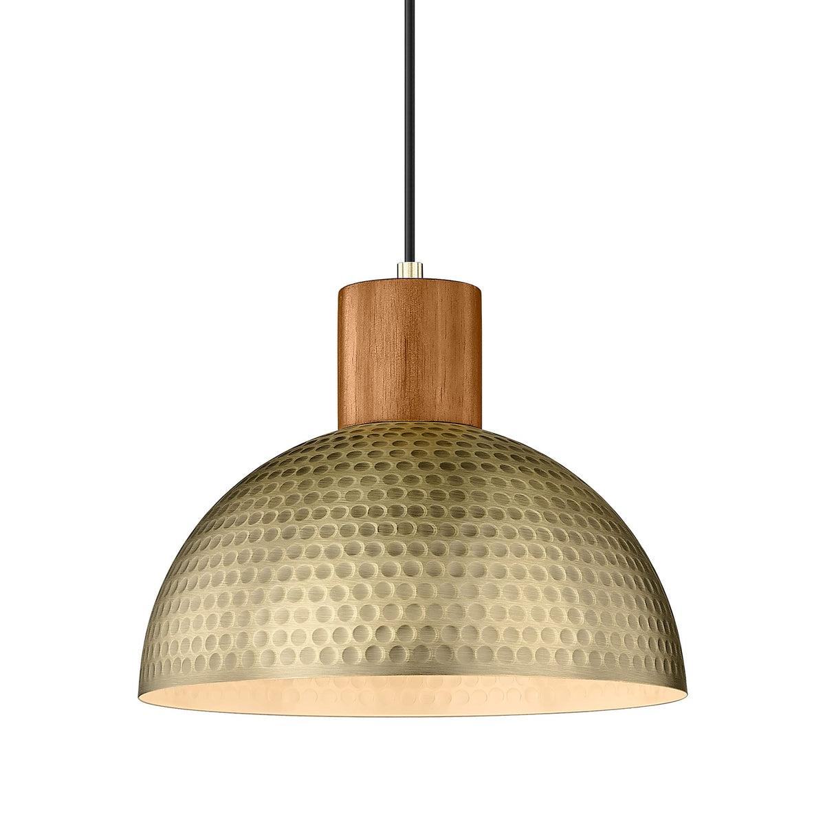 Elyona Vintage Pendant Light Fixtures, 12” Brushed Brass Hammered Metal & Rubber Wood Industrial Dome Hanging Lamp, Antique Gold Kitchen Pendant Light For Island, Farmhouse, Sink, Dining Room, Hallway