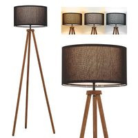 Elyona Wood Tripod Floor Lamp, Modern Standing Lamp With Black Drum Linen Shade & 3 Color Temperatures Led Bulb, Industrial Tall