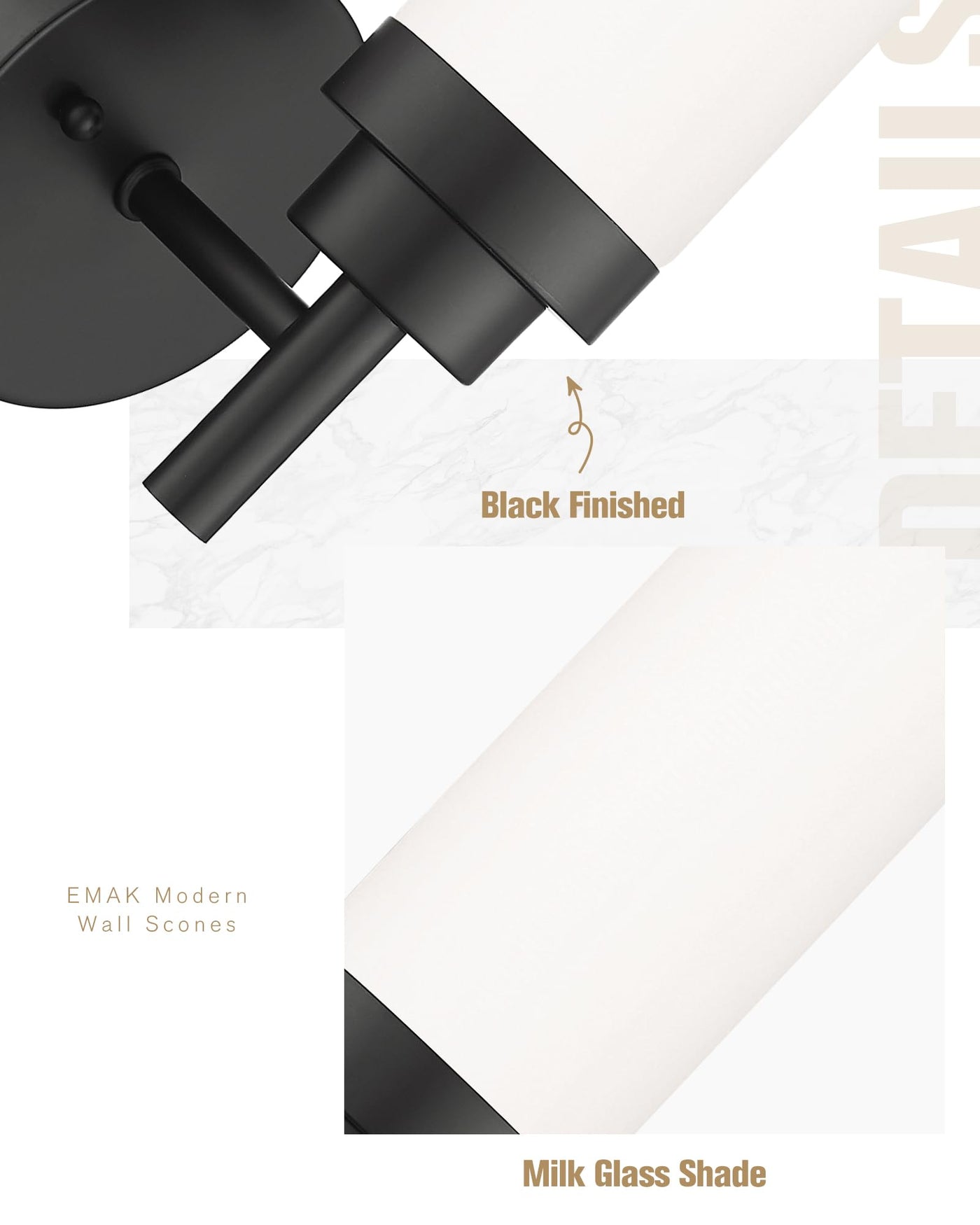Emak 13 Inch Black Bathroom Light Fixtures, Modern Wall Sconce With Milk Glass Shade, Farmhouse Wall Lamp For Bathroom, Mirror,