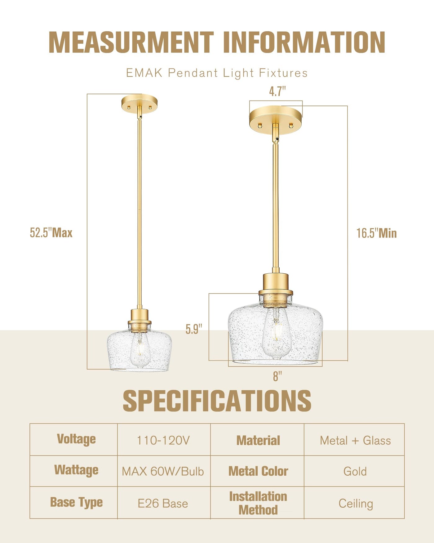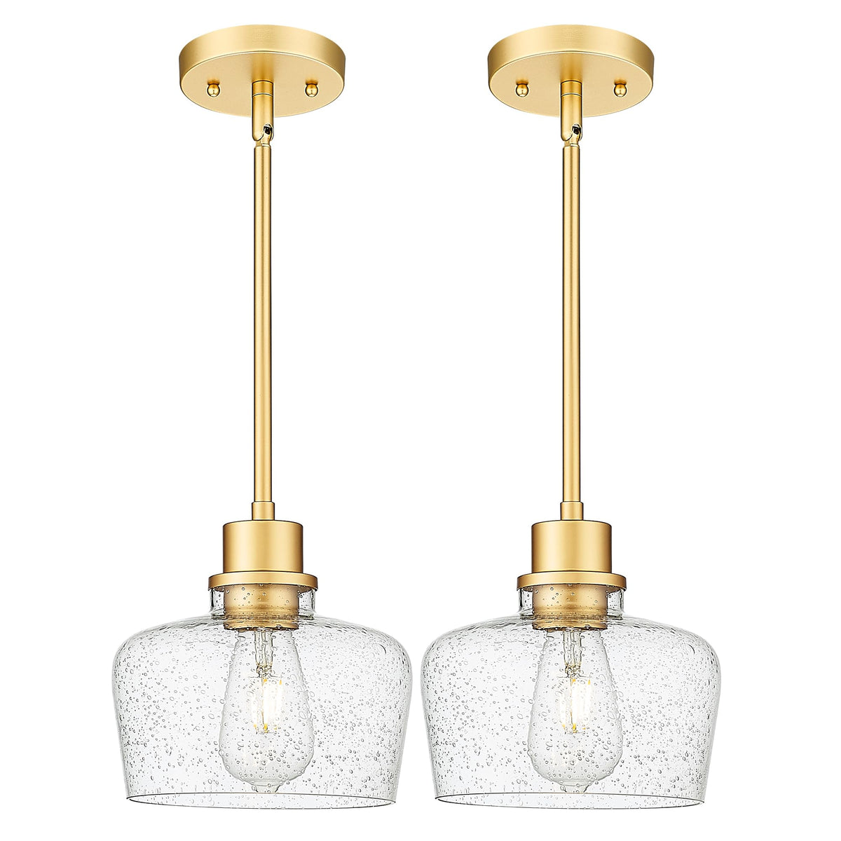 Emak 2 Pack Gold Pendant Light Fixtures, Modern Pendant Lighting With Seeded Glass Shade, 8 Inch Hanging Lights For Kitchen Isla