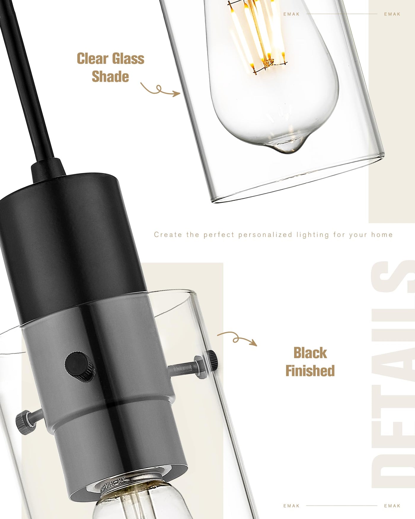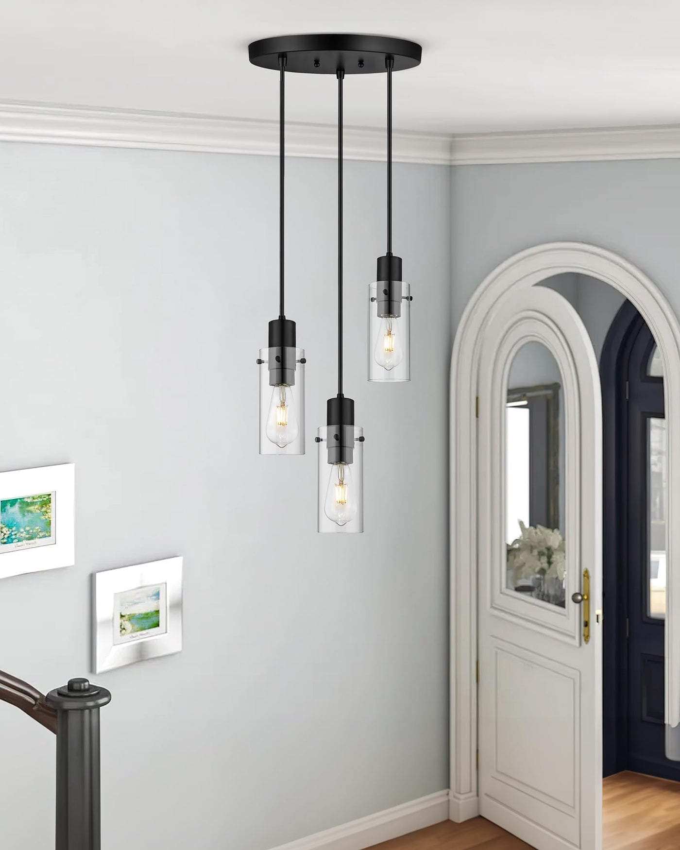 Emak 3-Light Pendant Lights Kitchen Island, Modern Farmhouse Black Pendant Light With Clear Glass Shade, Cluster Hanging Lights