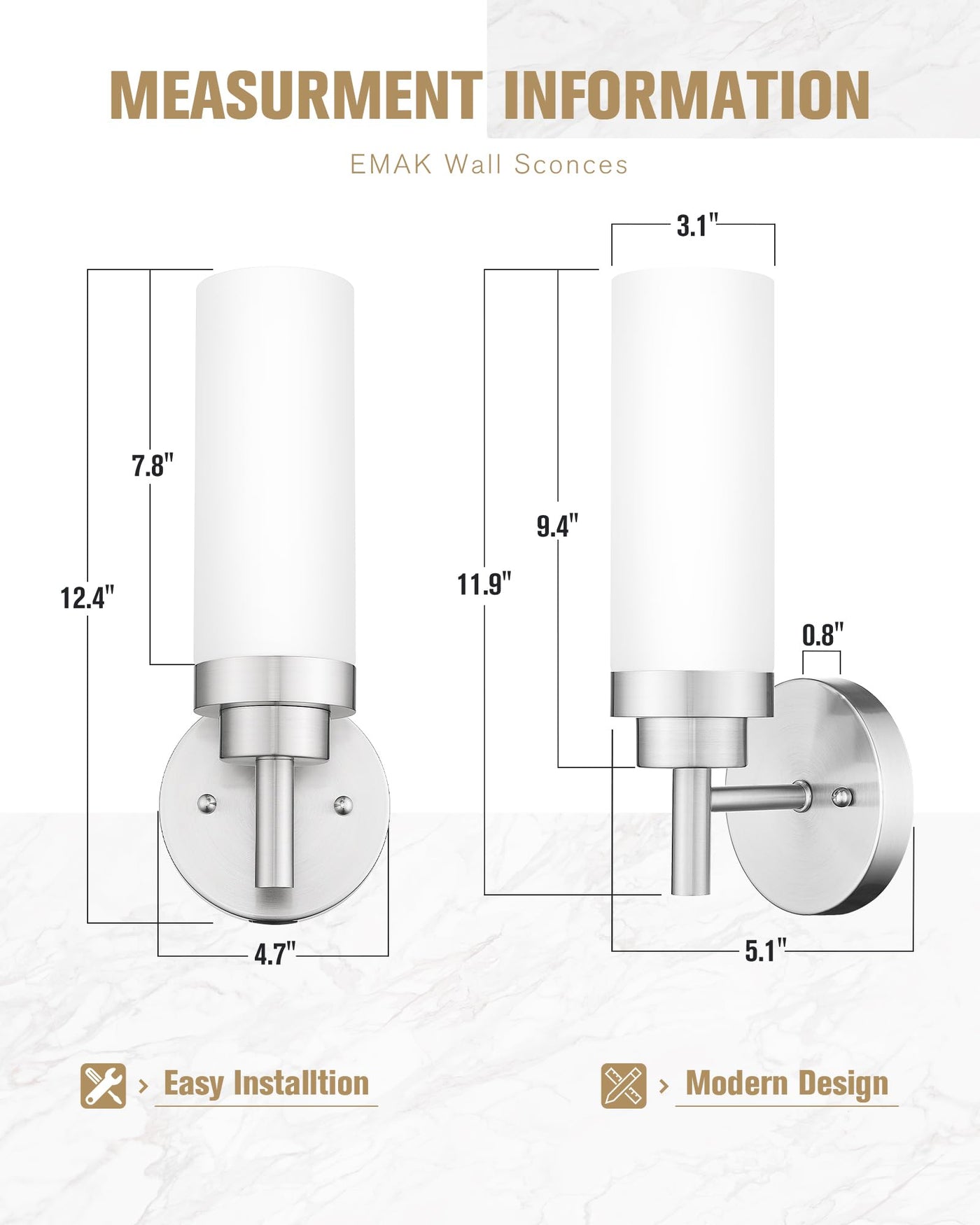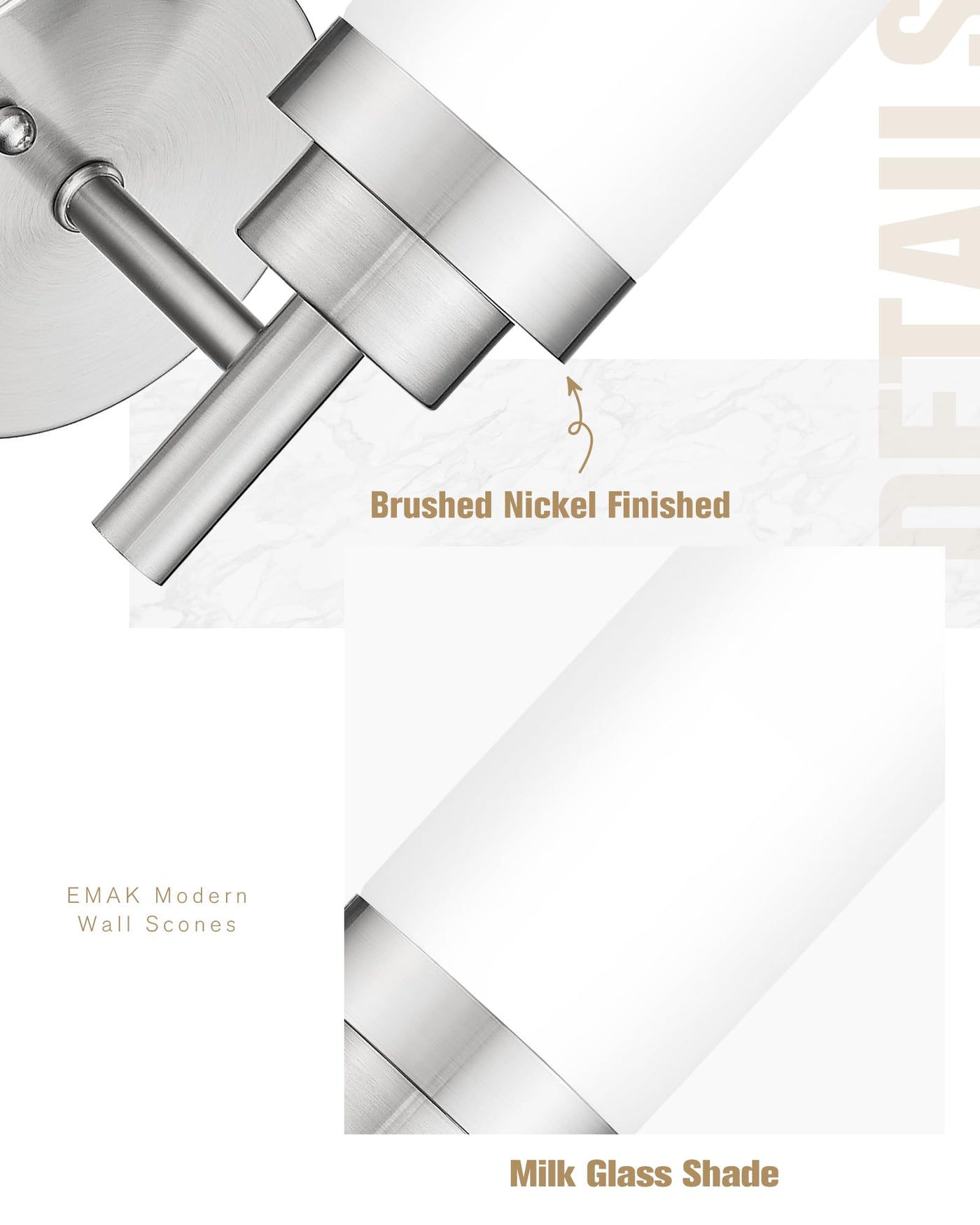 Emak Brushed Nickel Sconces Wall Lighting, Modern Vanity Lights With Milk Glass Shade, Wall Sconce For Bathroom, Bedroom, Living