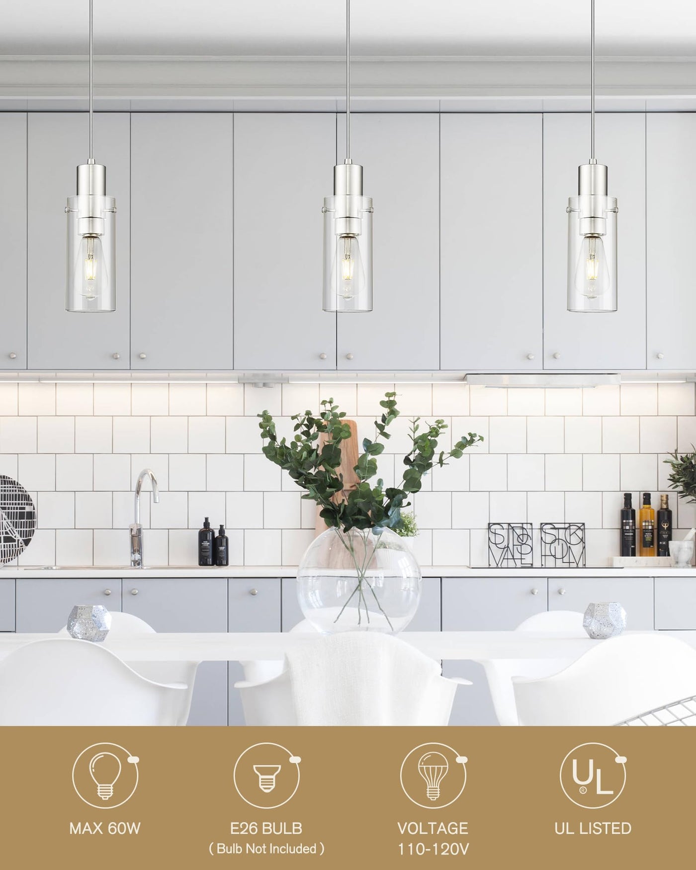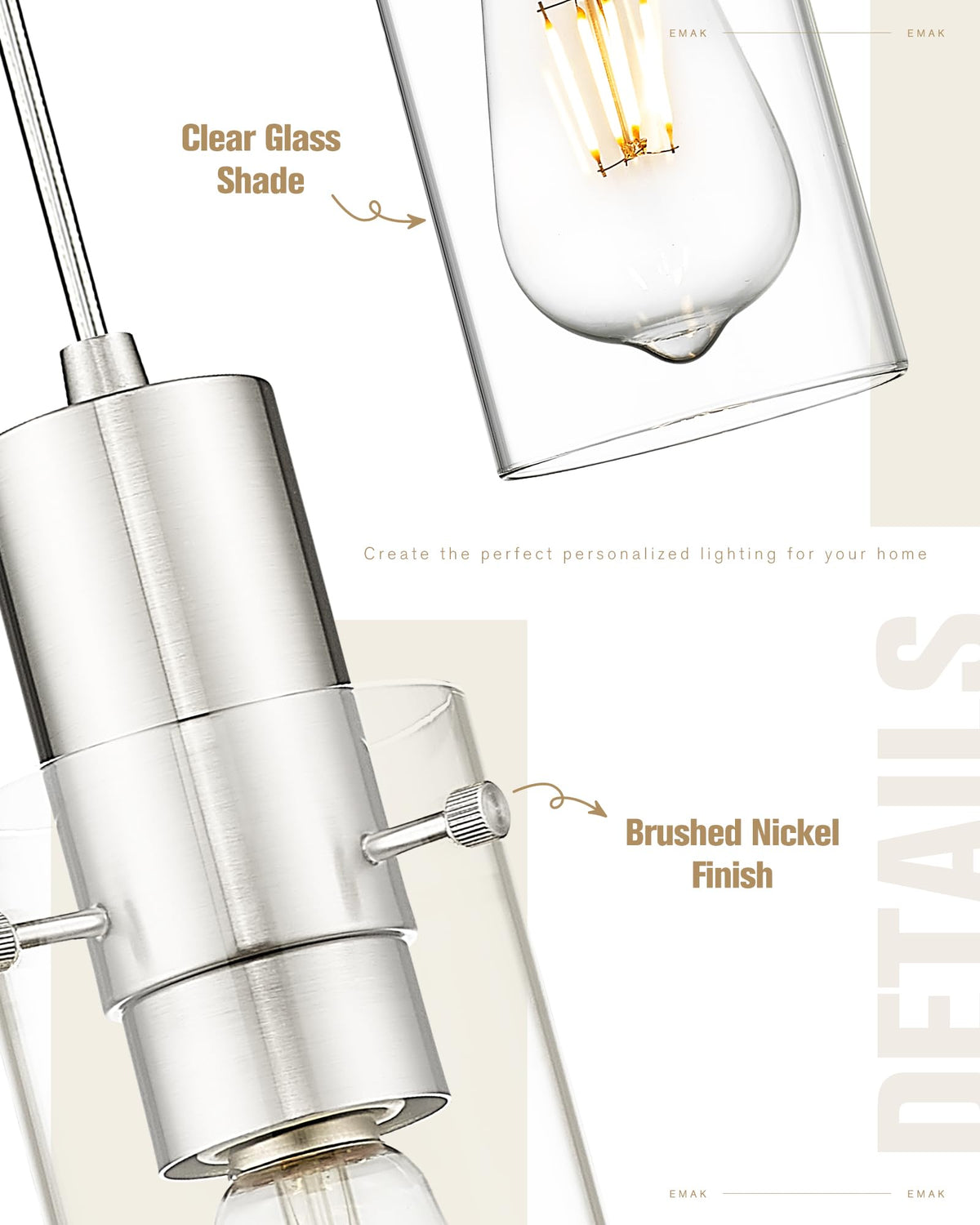 Emak Cylinder Pendant Lights Kitchen Island, Modern Brushed Nickel Pendant Light With Clear Glass Shade, 1 Light Pendant Lightin