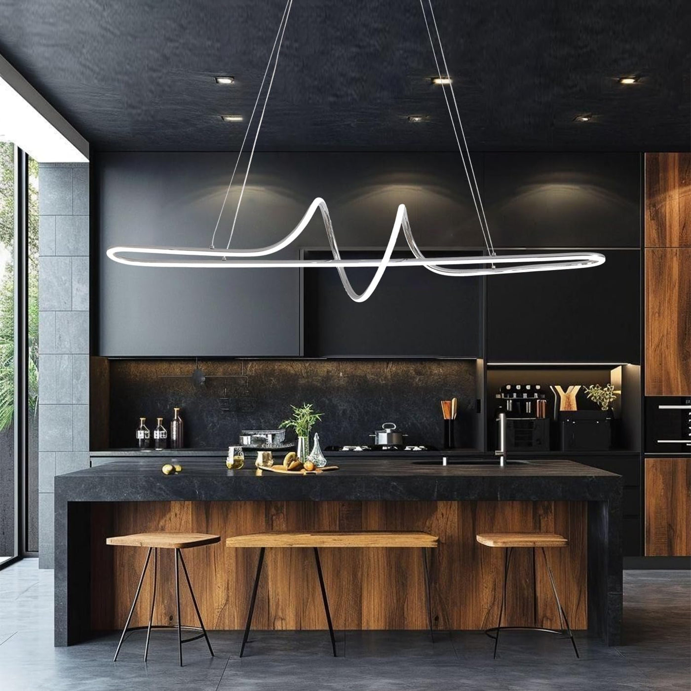 The EMBRING Modern LED Chandelier is an elegant lighting solution designed to enhance the ambiance of your dining room or kitchen island. This sophisticated fixture combines contemporary design with advanced LED technology, making it a perfect choice for those looking to elevate their home decor.