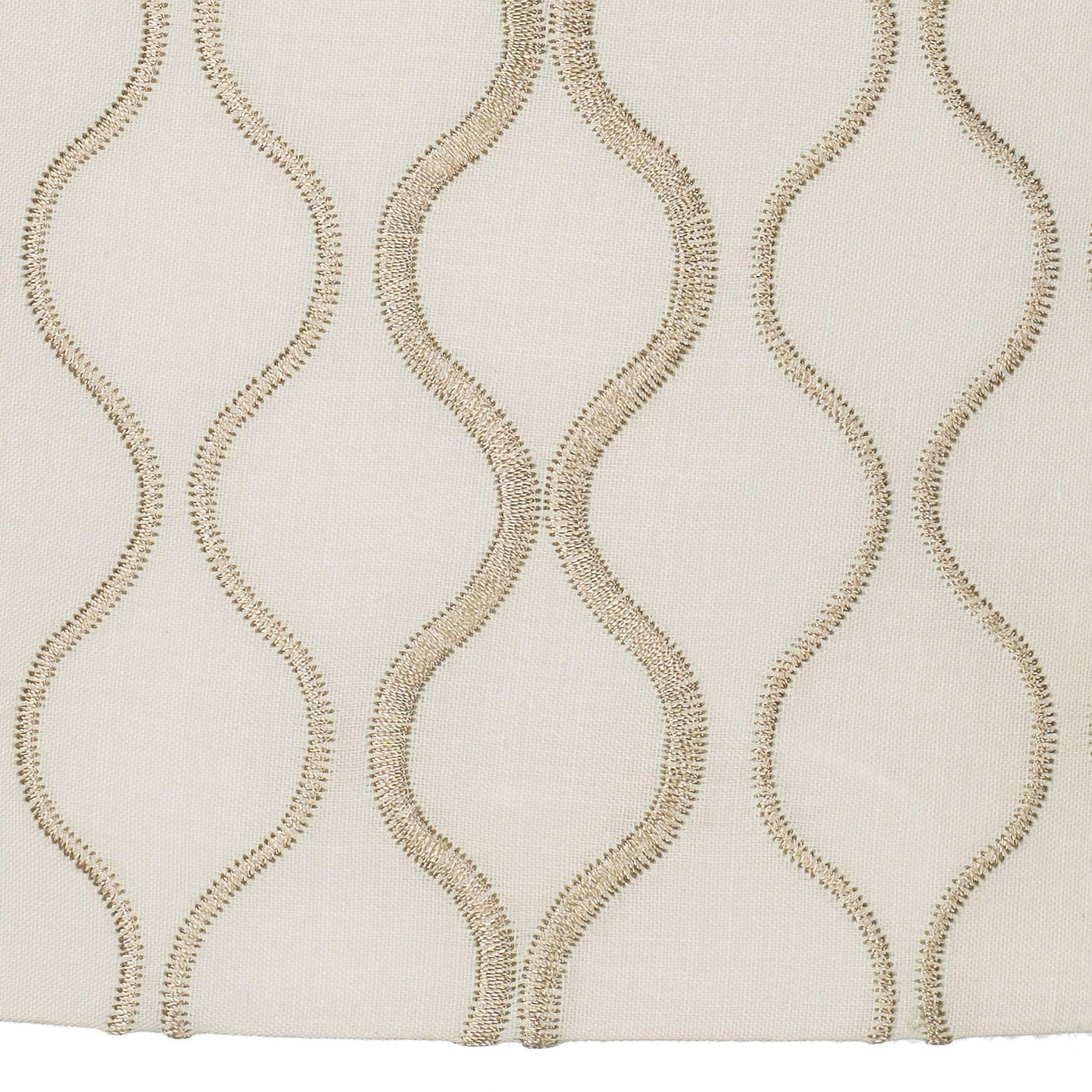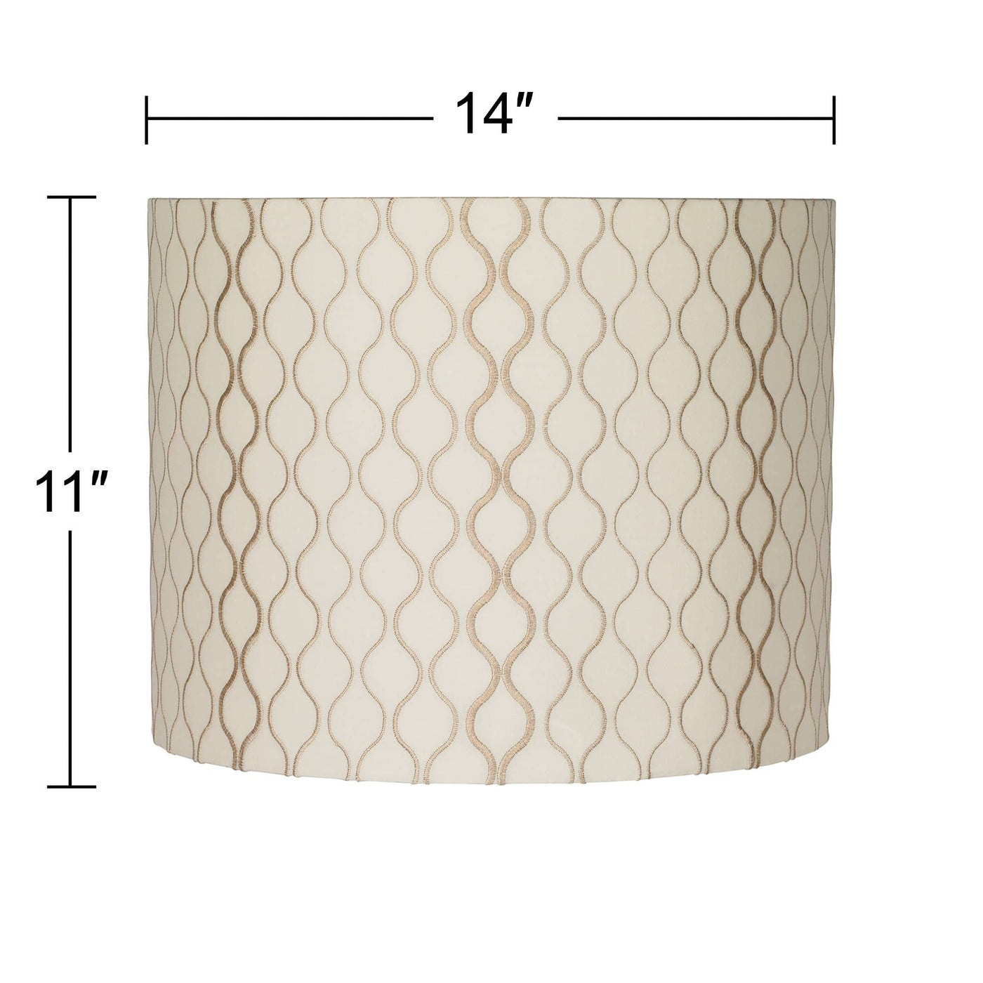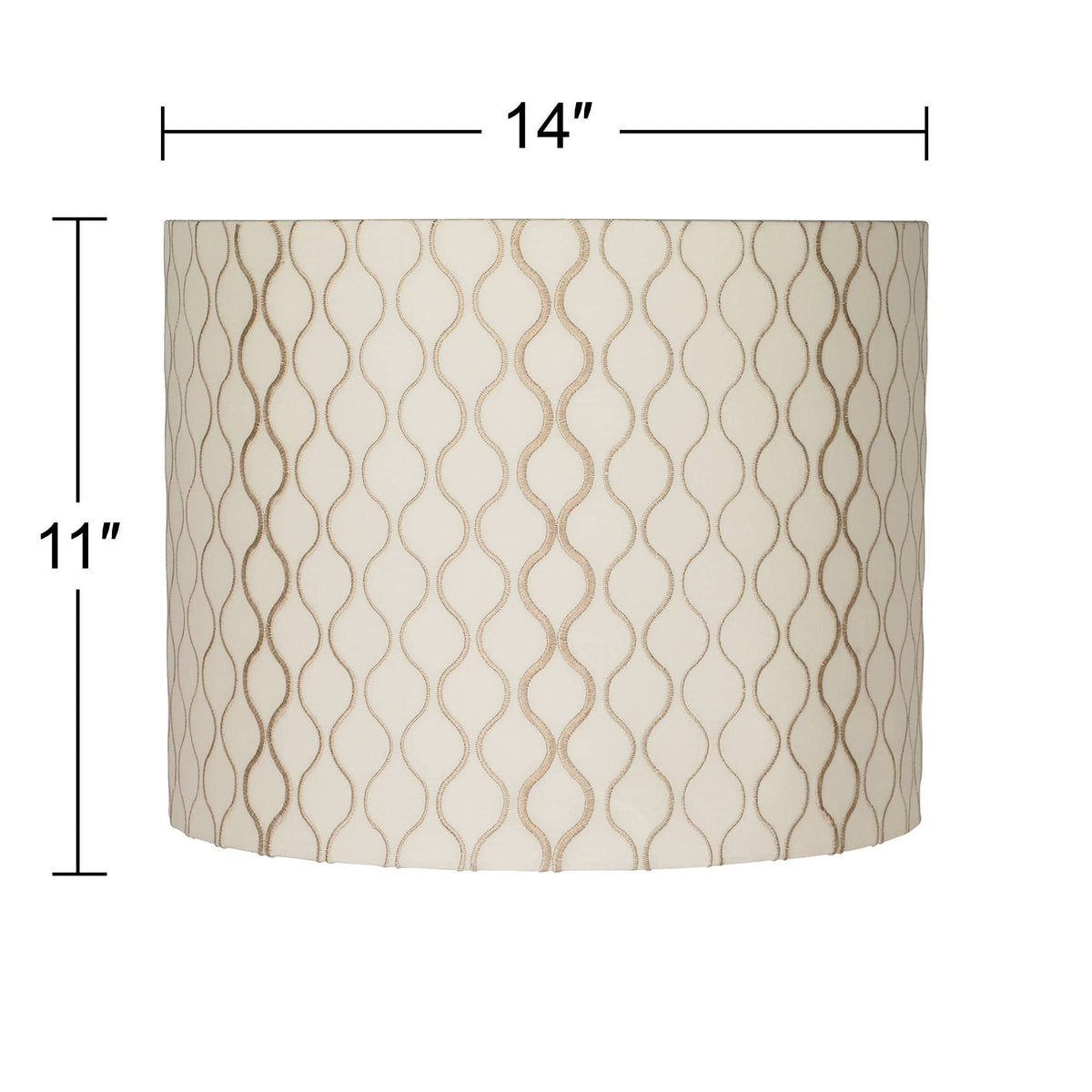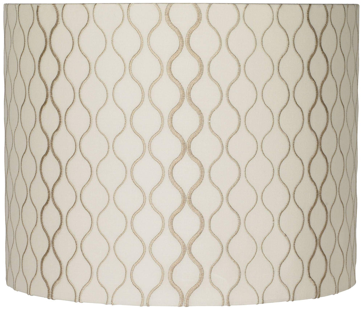 A sophisticated look with a lovely hourglass pattern. This hardback drum shade features off white fabric with tan embroidery. A great way to refresh existing lamps and fixtures.