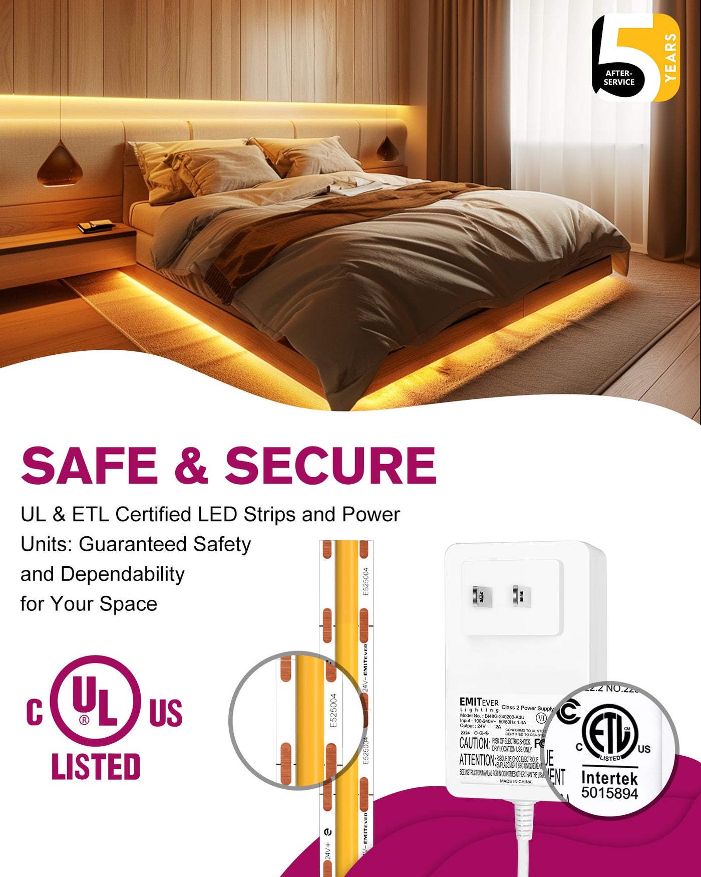 Q: Is the EMITEVER COB LED Strip safe for use around children and pets?A: Yes, the EMITEVER COB LED Strip is UL Listed and operates on low voltage 24V, making it safe for use around children and pets.