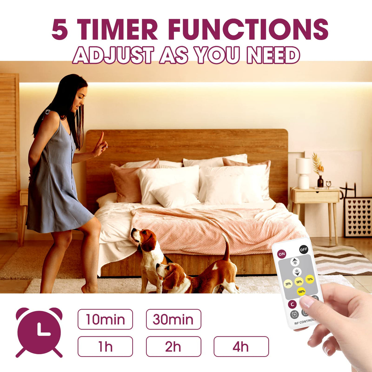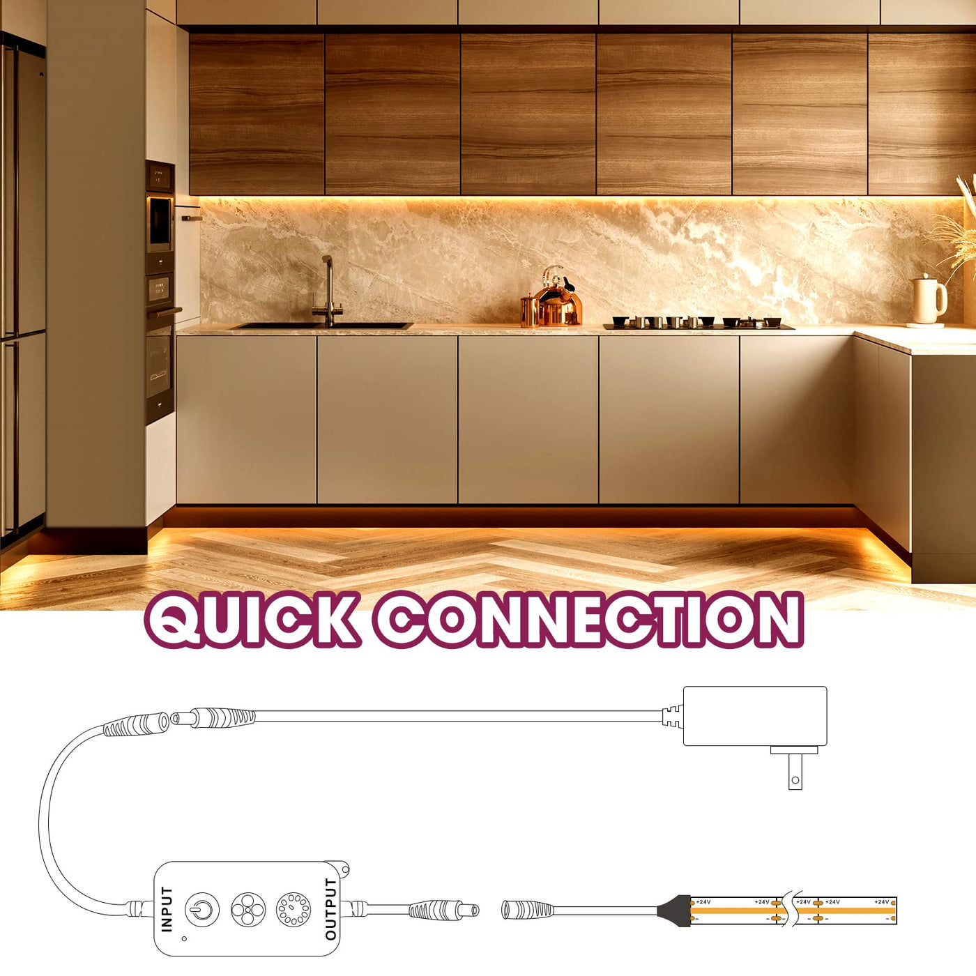 Emitever Led Strip Light Warm White 3000K 16.4Ft,24V Dc Cob Dimmable Tape Lights With Rf Controller,Premium High Density Power Adapter,1600Leds Ul Listed For Bedroom,Kitchen Cabinets,Indoor Use
