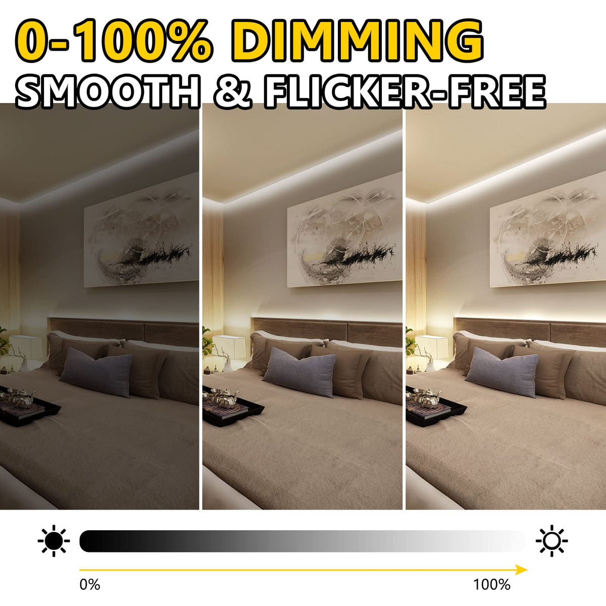 Q: Is the EMITEVER LED Strip compatible with dimmers?A: Yes, these LED strips are dimmable from zero to one hundred percent and are compatible with most ELV and TRIAC dimmers.