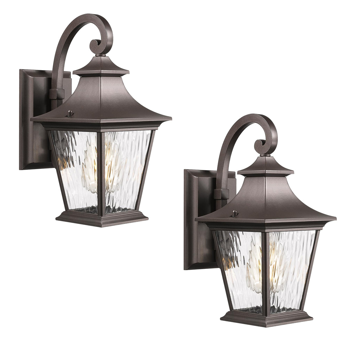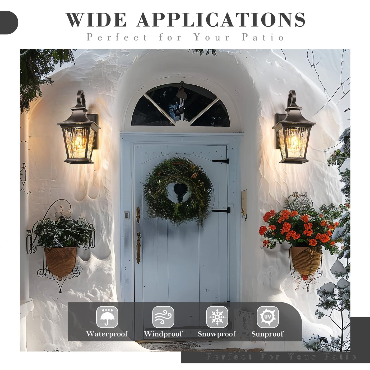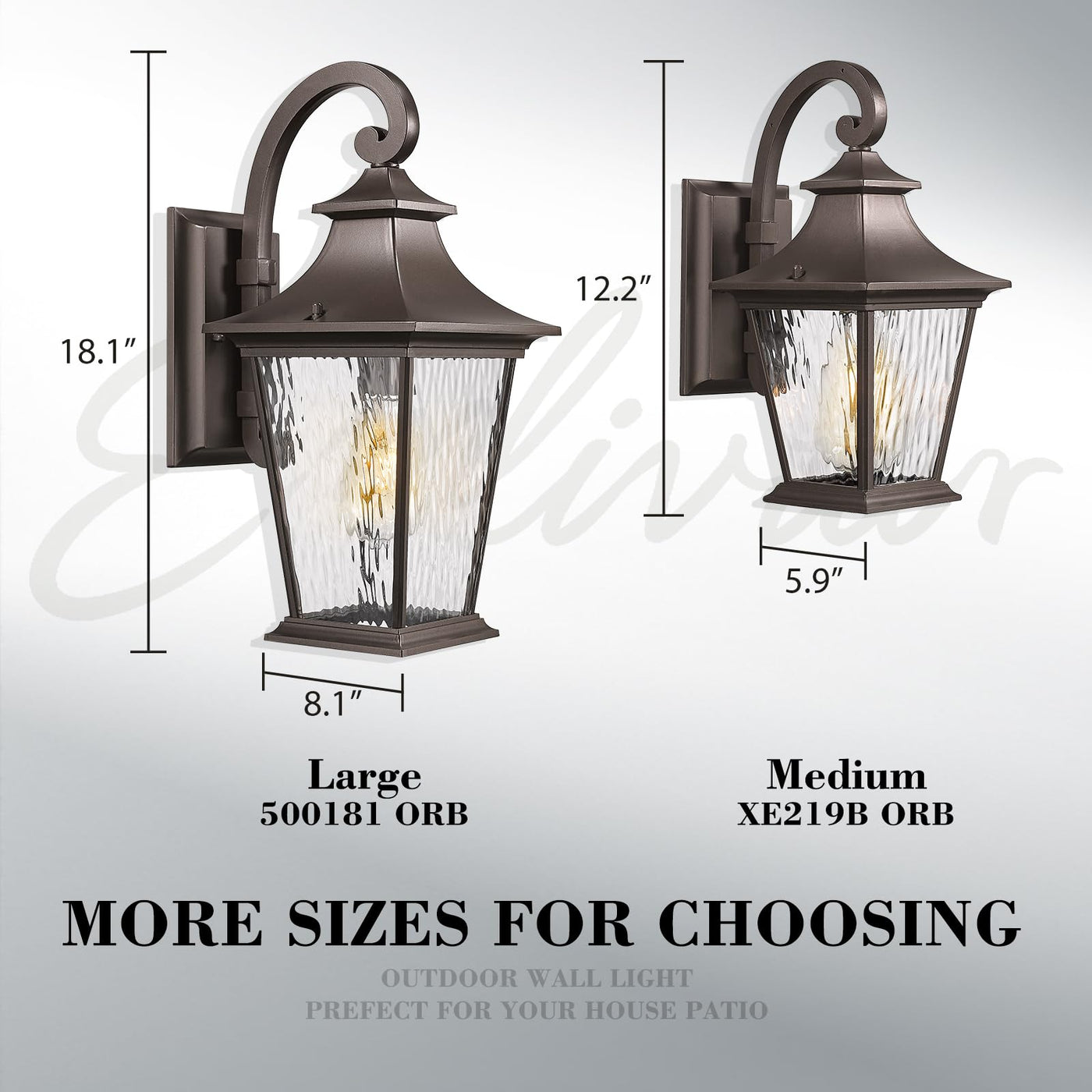 Emliviar 2 Pack Outdoor Wall Lights, Exterior Wall Lantern Sconce For Garage Patio, Oil Rubbed Bronze Finish With Water Ripple G