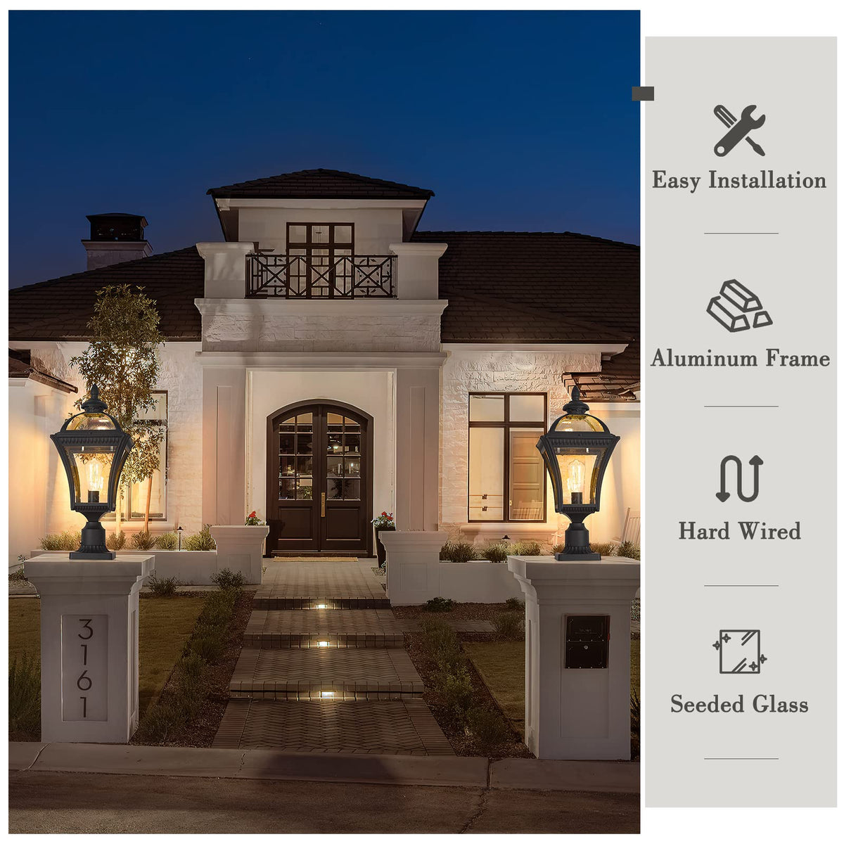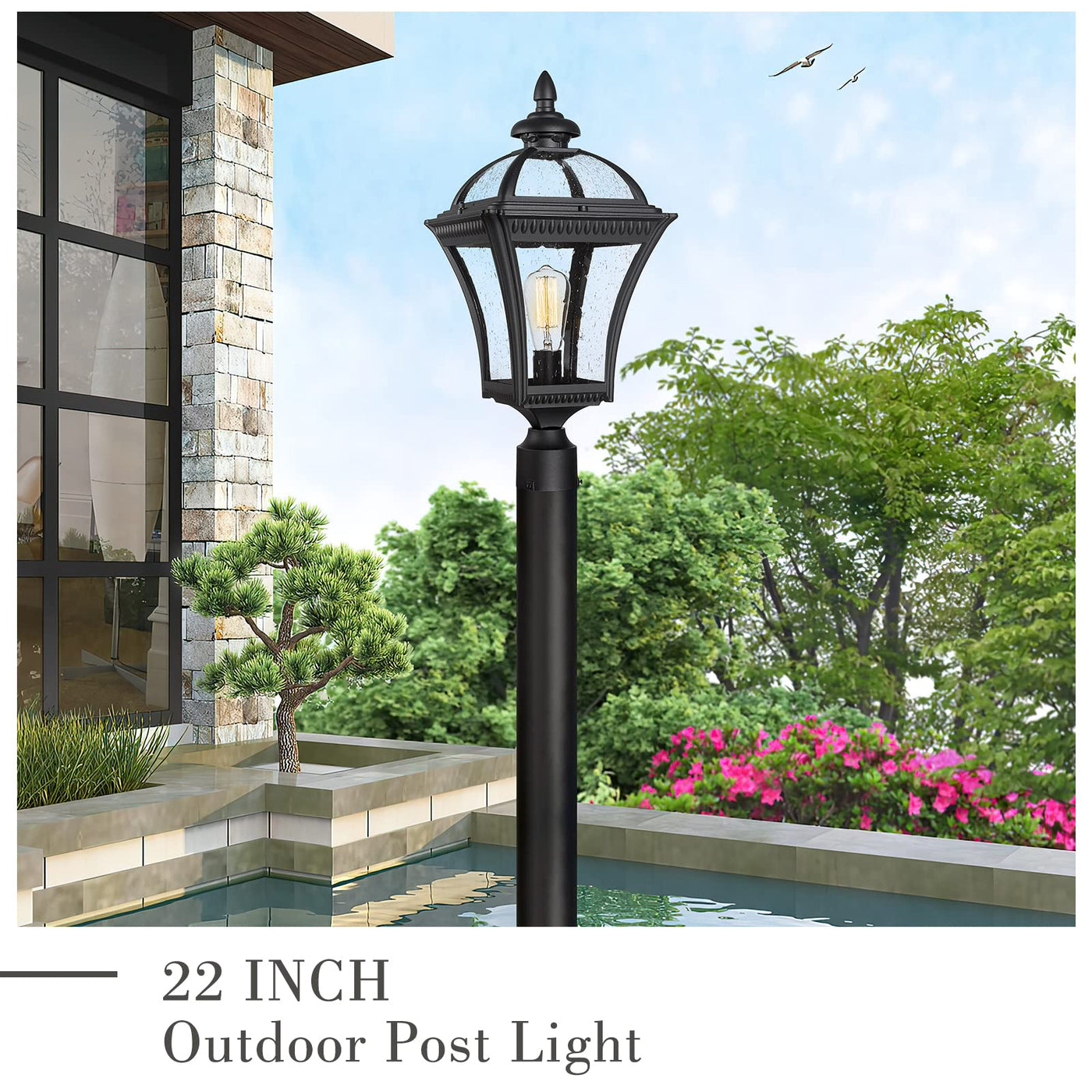 Emliviar 22 Inch Outdoor Post Light, Farmhouse Vintage Outside Pole Light For Yard, Aluminum With Seeded Glass, Black Finish, Xe
