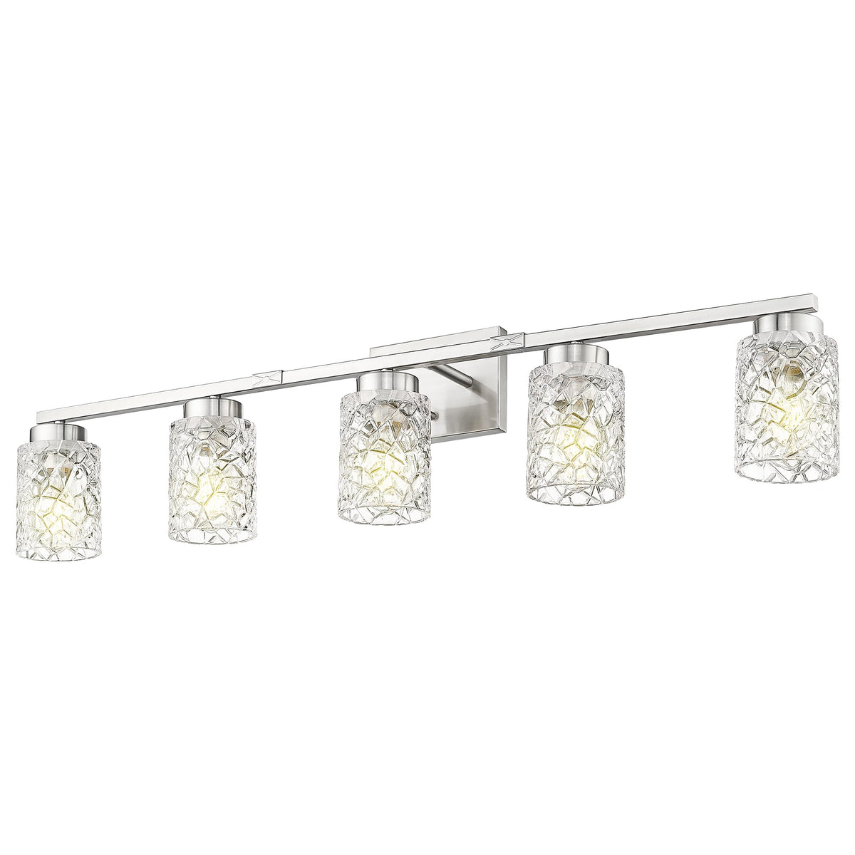 Emliviar 5-Light Modern Bathroom Vanity Light With Clear Geometric Glass, 40 Modern Brushed Nickel Bathroom Wall Light, E26 B