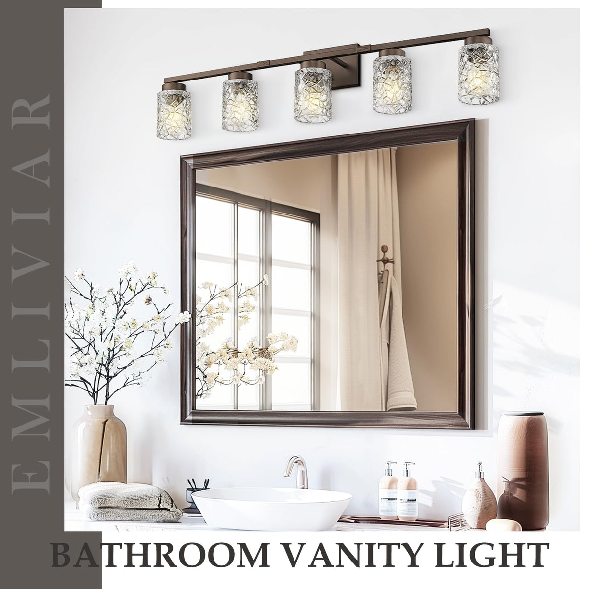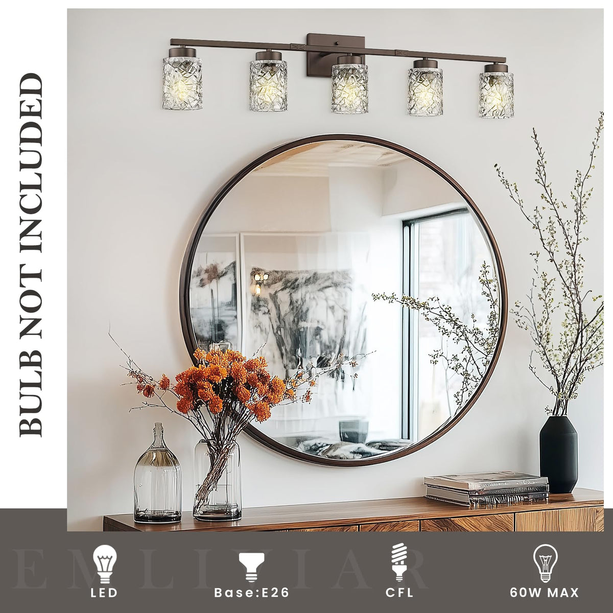 EMLIVIAR Vanity Lighting HE294B-5W ORB Specification: Dimension: 40'' x 6.8'' x 9'' (L x W x H); Back Plate: 6.7'' x 4.7''(L x H)