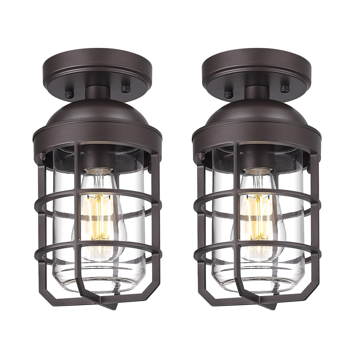 Emliviar Semi Flush Mount Ceiling Light Fixtures, 2 Pack, Oil Rubbed Bronze, Clear Tempered Glass Shade, Model GE255LF-2PK ORB