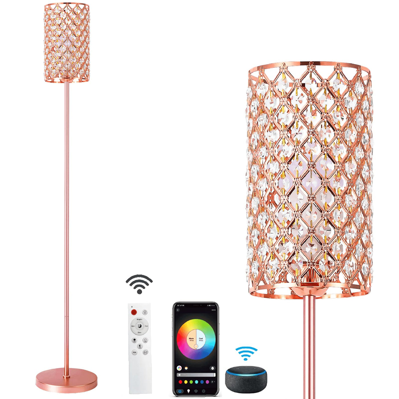 Emorlo Crystal Floor Lamp With Remote Control, Smart Rose Gold Floor Lamps For Living Room With Bulb Included, Crystal Standing