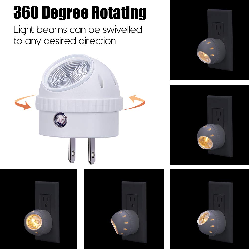 Emotionlite Plug-In Night Lights, Warm White Led Nightlight, 360? Rotation, Dusk To Dawn Sensor, Kids, Adult, Bedroom, Hallway,