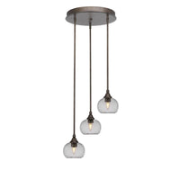 (2143-BRZ-202) Empire 3 Light Cluster Pendalier In Bronze Finish With 7" Clear Bubble Glass. Rated for: Dry location. Light Bulb Data: 3 Medium 100 Watt. Bulb Included: No.
