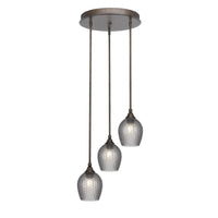 Q: What style does the Empire 3 Light Cluster Pendalier complement?A: With its bronze finish and smoked textured glass, the Empire 3 Light Cluster Pendalier complements a variety of decor styles including industrial, vintage, and modern aesthetics.