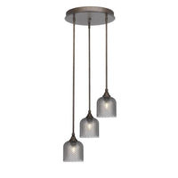 (2143-BRZ-4912) Empire 3 Light Cluster Pendalier In Bronze Finish With 7" Smoke Textured Glass. Rated for: Dry location. Light Bulb Data: 3 Medium 100 Watt. Bulb Included: No.
