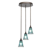 (2143-BRZ-725) Empire 3 Light Cluster Pendalier In Bronze Finish With 5.5" Teal Crystal Glass. Rated for: Dry location. Light Bulb Data: 3 Medium 100 Watt. Bulb Included: No.