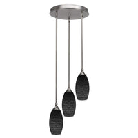 (2143-BN-4049) Empire 3 Light Cluster Pendalier In Brushed Nickel Finish With 5.5" Black Matrix Glass. Rated for: Dry location. Light Bulb Data: 3 Medium 100 Watt. Bulb Included: No.
