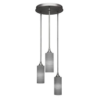 2143-BN-4092 Empire 3 Light Cluster Pendalier Shown In Brushed Nickel Finish With 4" Gray Matrix Glass. Rated for: Dry location. Light Bulb Data: 3 Medium 100 watt. Bulb included: No.