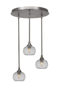 (2183-BN-202) Empire Empire 3 Light Cluster Pendalier In Brushed Nickel Finish With 7" Clear Bubble Glass. Rated for: Dry Location. Light Bulb Data: 3 Medium 100 watt. Bulb Included: No.