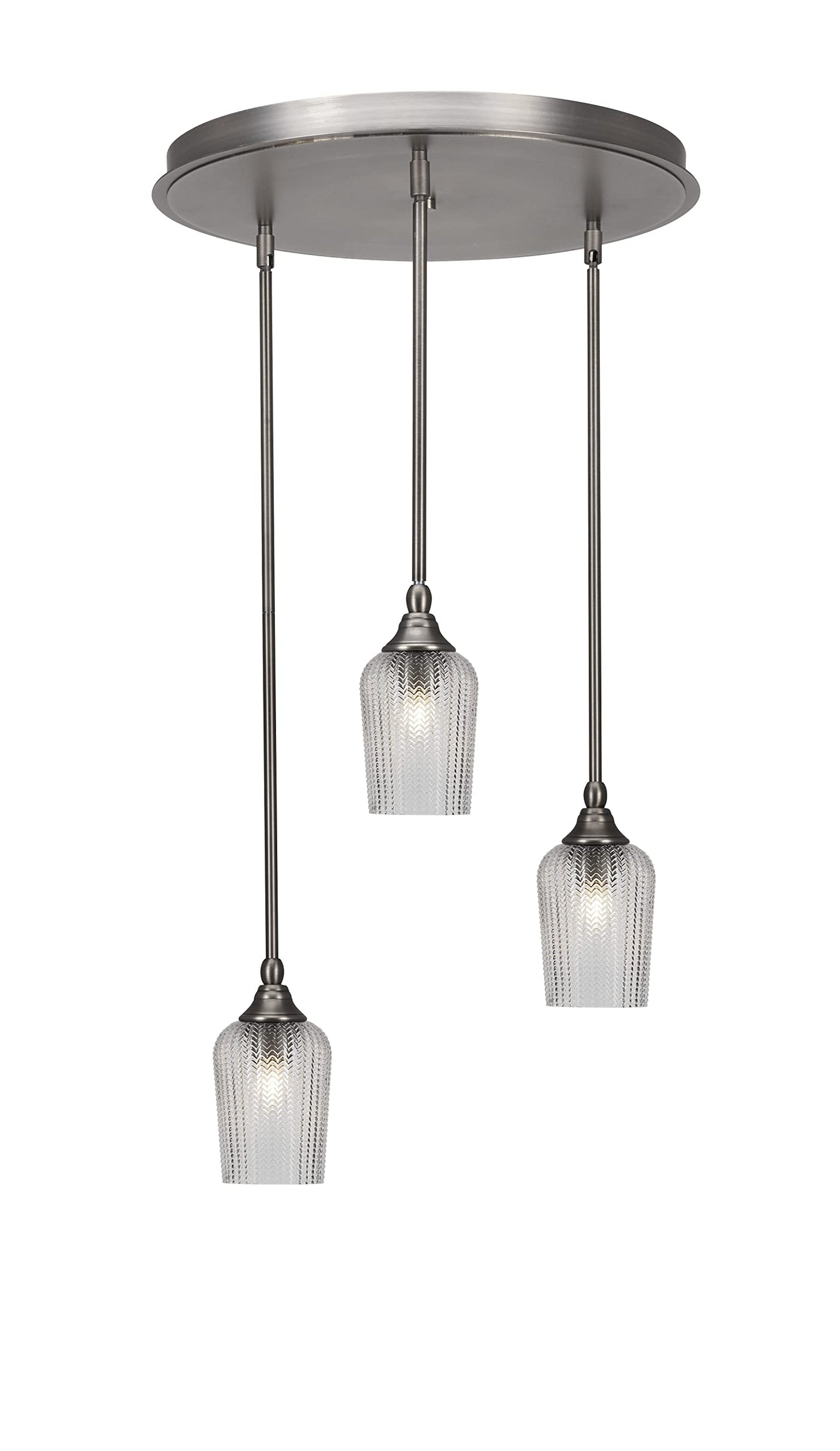 (2183-BN-4250) Empire Empire 3 Light Cluster Pendalier In Brushed Nickel Finish With 5" Clear Textured Glass. Rated for: Dry Location. Light Bulb Data: 3 Medium 100 watt. Bulb Included: No.
