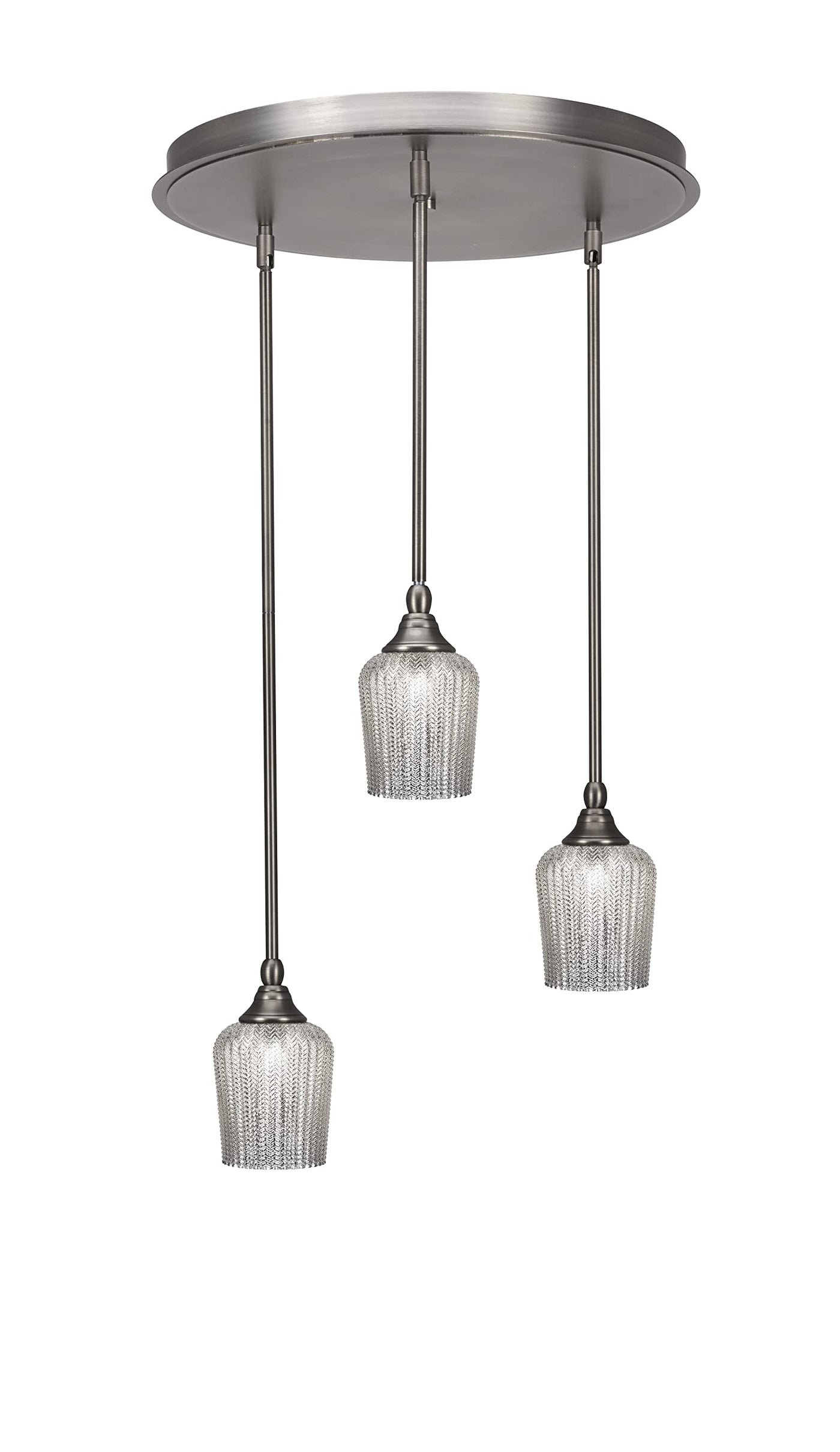 (2183-BN-4283) Empire Empire 3 Light Cluster Pendalier In Brushed Nickel Finish With 9" Silver Textured Glass. Rated for: Dry Location. Light Bulb Data: 3 Medium 100 watt. Bulb Included: No.