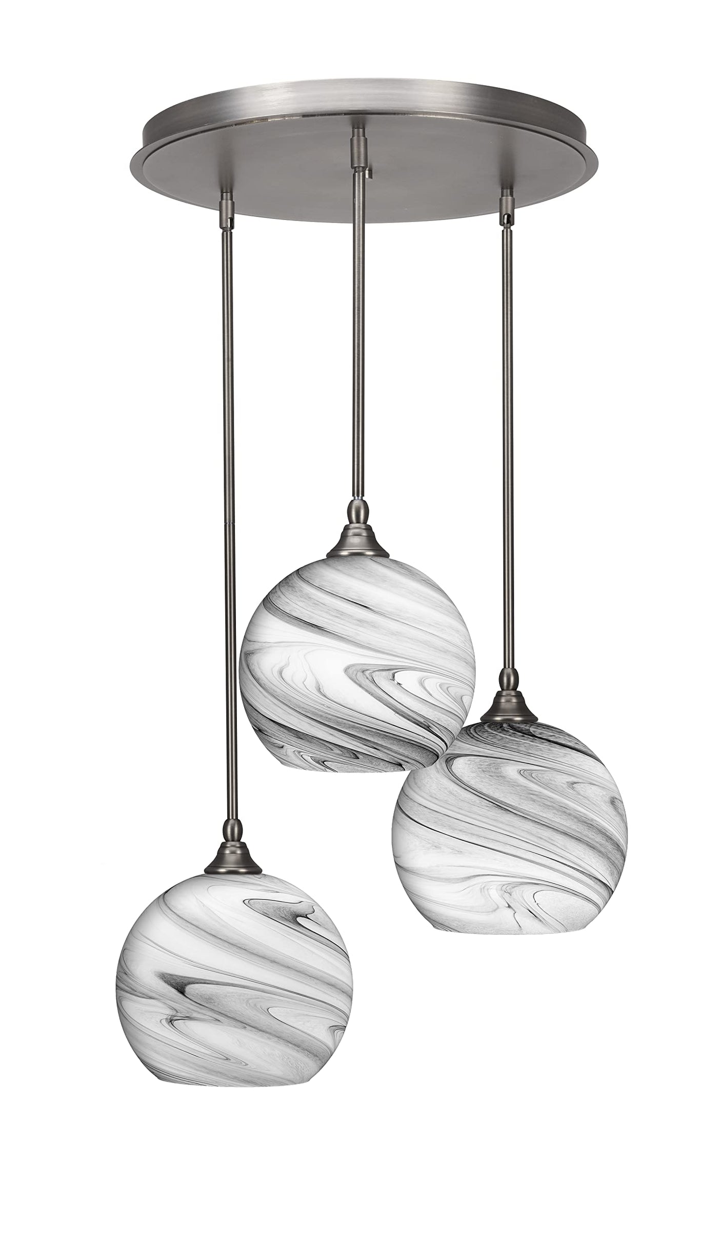 (2183-BN-4359) Empire Empire 3 Light Cluster Pendalier In Brushed Nickel Finish With 9.5" Onyx Swirl Glass. Rated for: Dry Location. Light Bulb Data: 3 Medium 100 watt. Bulb Included: No.