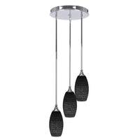 (2143-CH-4049) Empire 3 Light Cluster Pendalier In Chrome Finish With 5.5" Black Matrix Glass. Rated for: Dry location. Light Bulb Data: 3 Medium 100 Watt. Bulb Included: No.