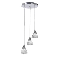 (2143-CH-4769) Empire 3 Light Cluster Pendalier In Chrome Finish With 6.25" Onyx Swirl Glass. Rated for: Dry location. Light Bulb Data: 3 Medium 100 Watt. Bulb Included: No.