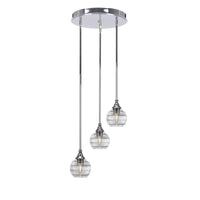 (2143-CH-5110) Empire 3 Light Cluster Pendalier In Chrome Finish With 6" Clear Ribbed Glass. Rated for: Dry location. Light Bulb Data: 3 Medium 100 Watt. Bulb Included: No.