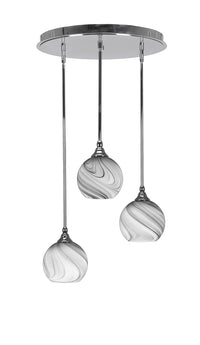 (2183-CH-4109) Empire Empire 3 Light Cluster Pendalier In Chrome Finish With 5.75" Onyx Swirl Glass. Rated for: Dry Location. Light Bulb Data: 3 Medium 100 watt. Bulb Included: No.