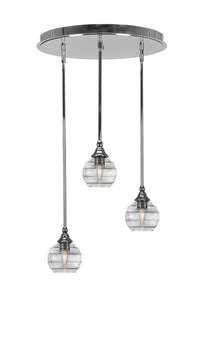 (2183-CH-5110) Empire Empire 3 Light Cluster Pendalier In Chrome Finish With 6" Clear Ribbed Glass. Rated for: Dry Location. Light Bulb Data: 3 Medium 100 watt. Bulb Included: No.