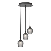 Q: What design styles does the Empire 3 Light Cluster Pendant complement?A: With its dark granite finish and smoked textured glass, the Empire 3 Light Cluster Pendant complements industrial, modern, and contemporary design styles, adding a touch of elegance to any space.